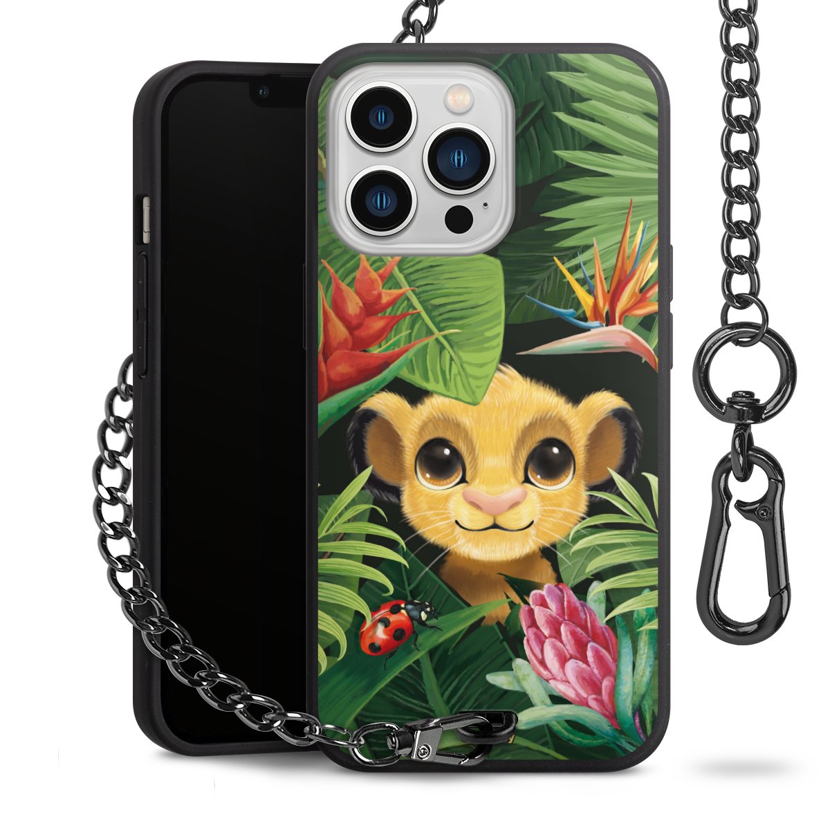 Die Handyhülle verfügt über eine mittig am unteren Rand platzierte Öse, an der die Metallkette stabil befestigt ist. Bestelle die Hülle einfach für Dein Smartphone-Modell, dann passt sie wie angegossen und Du brauchst sie bloß einmal anzudrücken. Handy in die Tasche, Karabiner an den Hosenbund – schon kann die Party starten.