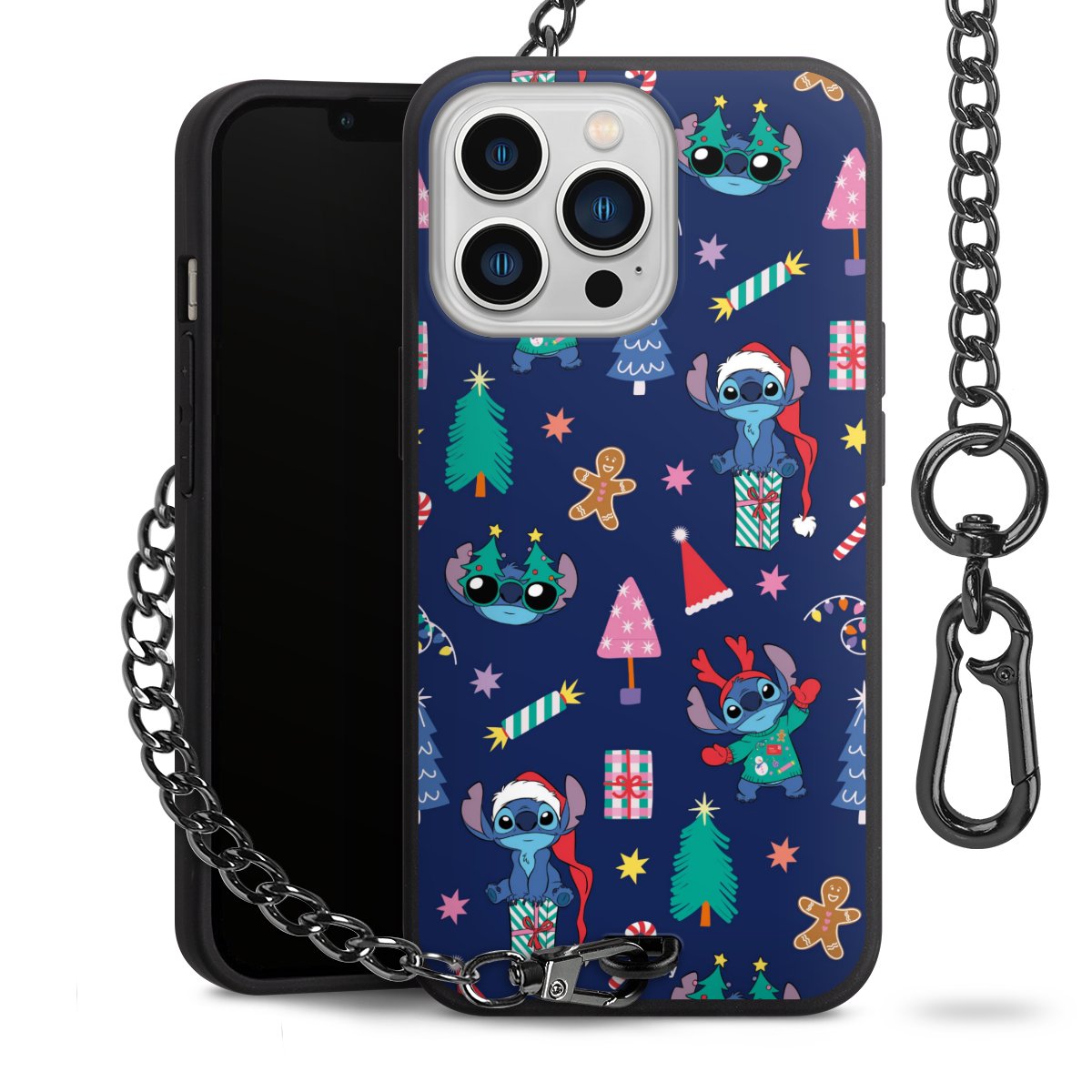 • Mattschwarze Handyhülle mit Metallkette