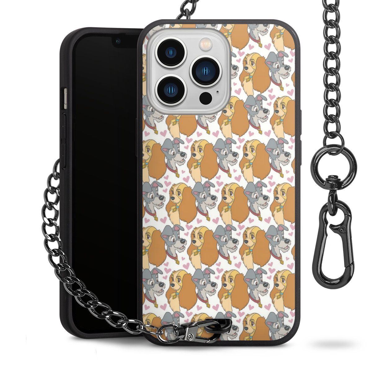 • Mattschwarze Handyhülle mit Metallkette