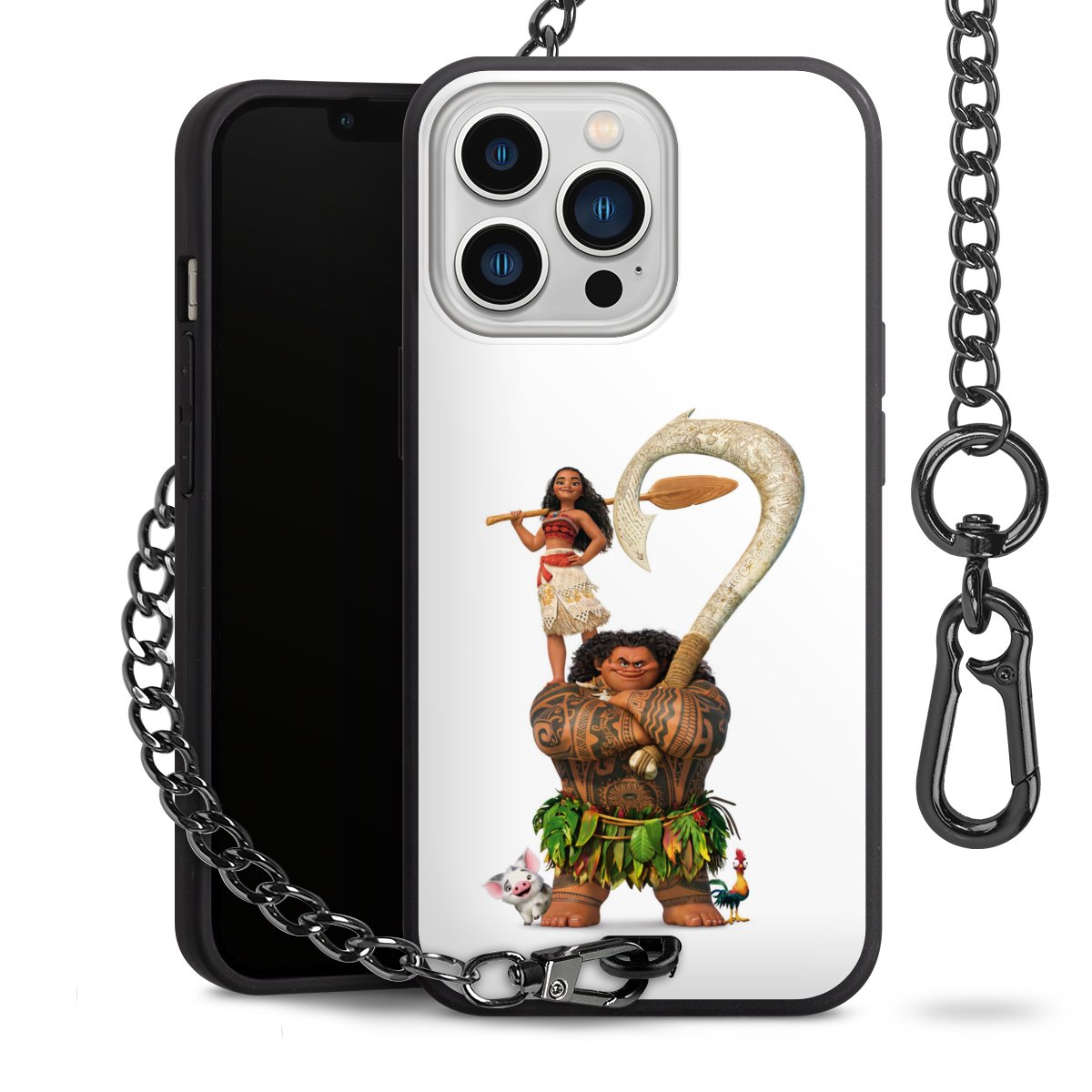 • Mattschwarze Handyhülle mit Metallkette