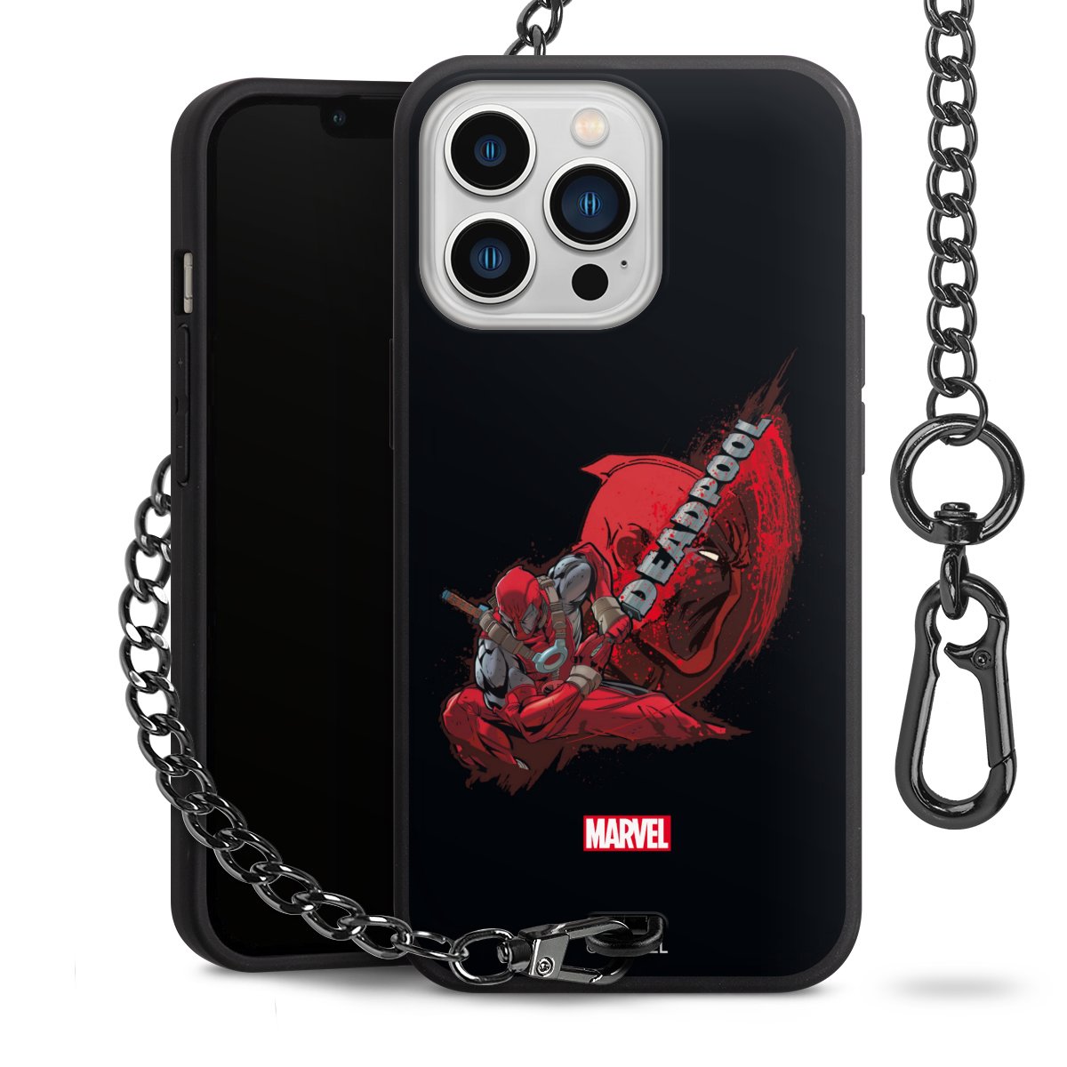 Die mattschwarze Silikon-Handyhülle besteht aus robustem TPU (thermoplastisches Polyurethan). Sie ist flexibel und schützt Dein Smartphone vor Stößen und Kratzern. Die Kette sowie der Karabinerhaken sind aus Metall in Gunmetal-Optik gefertigt. Für dieses Produkt kommen ausschließlich TÜV-geprüfte Materialien zum Einsatz.
