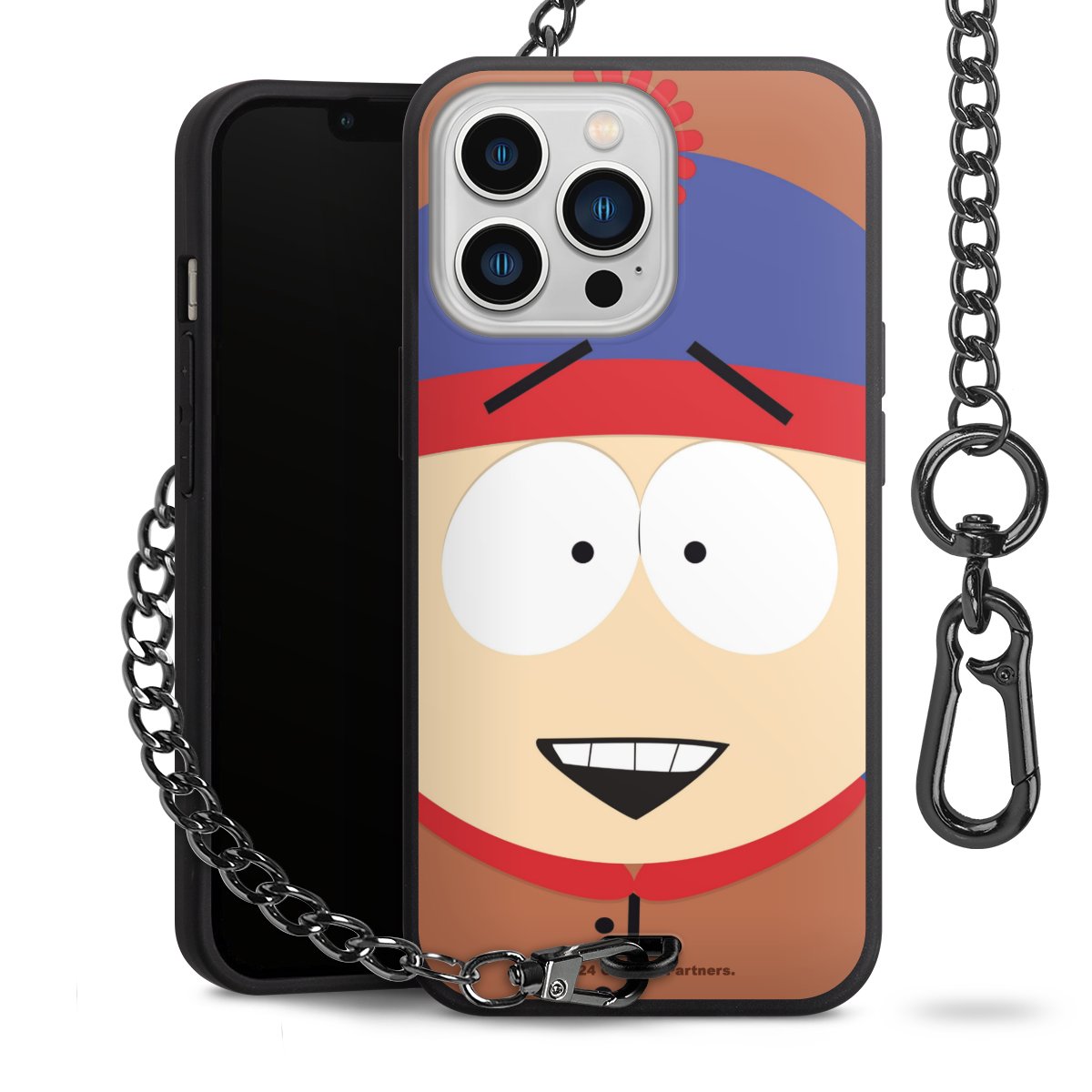 - Mattschwarze Handyhülle mit Metallkette