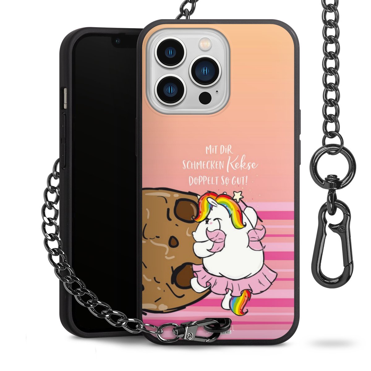 Die mattschwarze Silikon-Handyhülle besteht aus robustem TPU (thermoplastisches Polyurethan). Sie ist flexibel und schützt Dein Smartphone vor Stößen und Kratzern. Die Kette sowie der Karabinerhaken sind aus Metall in Gunmetal-Optik gefertigt. Für dieses Produkt kommen ausschließlich TÜV-geprüfte Materialien zum Einsatz.