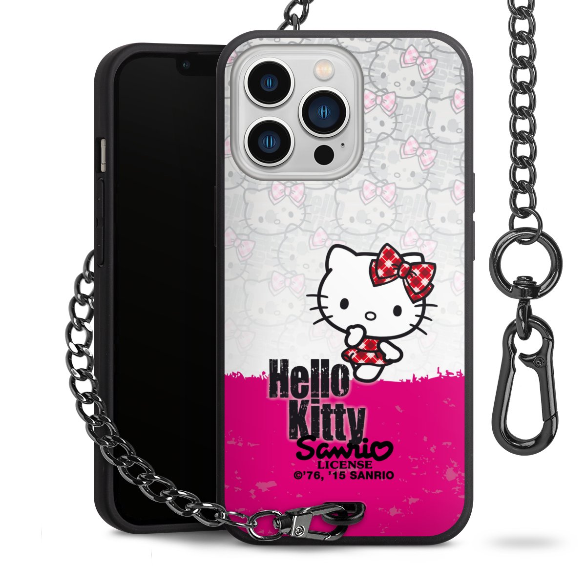 Die mattschwarze Silikon-Handyhülle besteht aus robustem TPU (thermoplastisches Polyurethan). Sie ist flexibel und schützt Dein Smartphone vor Stößen und Kratzern. Die Kette sowie der Karabinerhaken sind aus Metall in Gunmetal-Optik gefertigt. Für dieses Produkt kommen ausschließlich TÜV-geprüfte Materialien zum Einsatz.