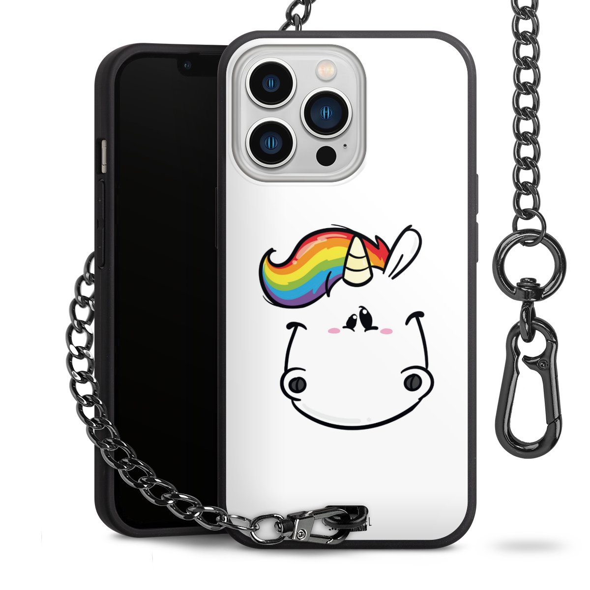 Die mattschwarze Silikon-Handyhülle besteht aus robustem TPU (thermoplastisches Polyurethan). Sie ist flexibel und schützt Dein Smartphone vor Stößen und Kratzern. Die Kette sowie der Karabinerhaken sind aus Metall in Gunmetal-Optik gefertigt. Für dieses Produkt kommen ausschließlich TÜV-geprüfte Materialien zum Einsatz.
