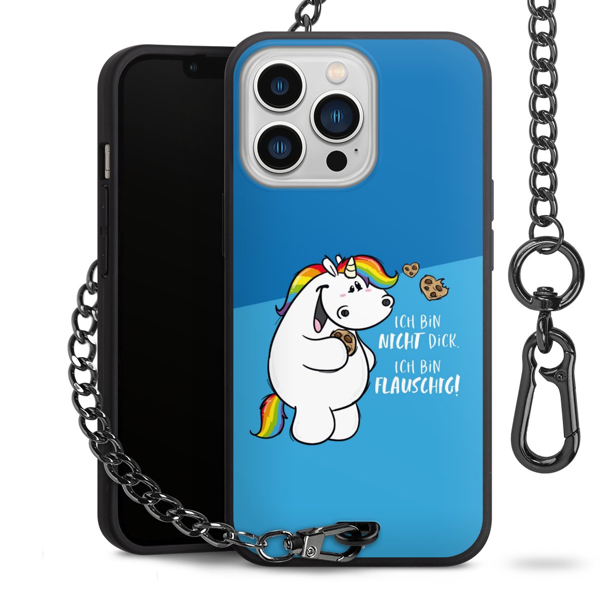Die mattschwarze Silikon-Handyhülle besteht aus robustem TPU (thermoplastisches Polyurethan). Sie ist flexibel und schützt Dein Smartphone vor Stößen und Kratzern. Die Kette sowie der Karabinerhaken sind aus Metall in Gunmetal-Optik gefertigt. Für dieses Produkt kommen ausschließlich TÜV-geprüfte Materialien zum Einsatz.