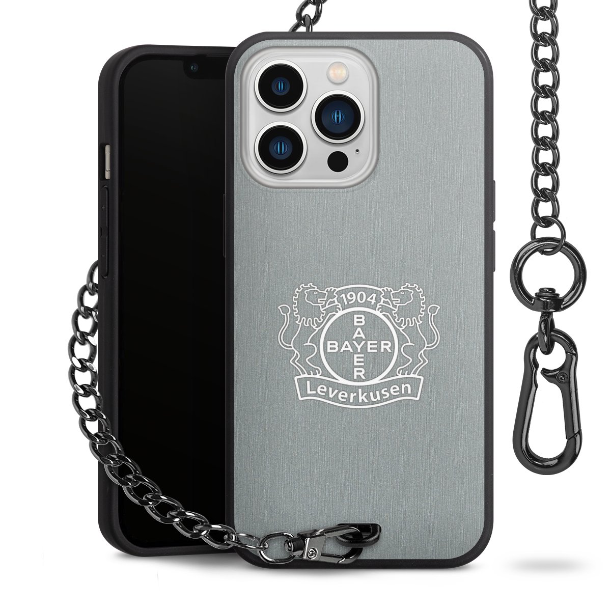 Die mattschwarze Silikon-Handyhülle besteht aus robustem TPU (thermoplastisches Polyurethan). Sie ist flexibel und schützt Dein Smartphone vor Stößen und Kratzern. Die Kette sowie der Karabinerhaken sind aus Metall in Gunmetal-Optik gefertigt. Für dieses Produkt kommen ausschließlich TÜV-geprüfte Materialien zum Einsatz.