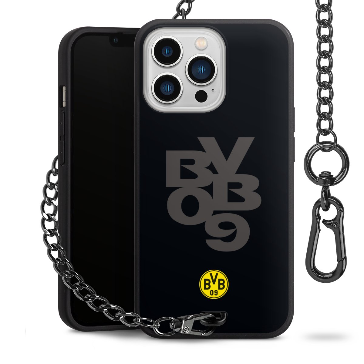 Die mattschwarze Silikon-Handyhülle besteht aus robustem TPU (thermoplastisches Polyurethan). Sie ist flexibel und schützt Dein Smartphone vor Stößen und Kratzern. Die Kette sowie der Karabinerhaken sind aus Metall in Gunmetal-Optik gefertigt. Für dieses Produkt kommen ausschließlich TÜV-geprüfte Materialien zum Einsatz.