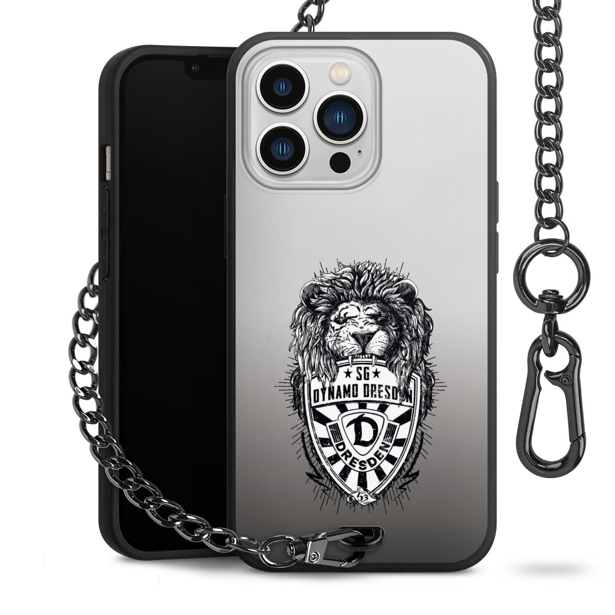 Die mattschwarze Silikon-Handyhülle besteht aus robustem TPU (thermoplastisches Polyurethan). Sie ist flexibel und schützt Dein Smartphone vor Stößen und Kratzern. Die Kette sowie der Karabinerhaken sind aus Metall in Gunmetal-Optik gefertigt. Für dieses Produkt kommen ausschließlich TÜV-geprüfte Materialien zum Einsatz.