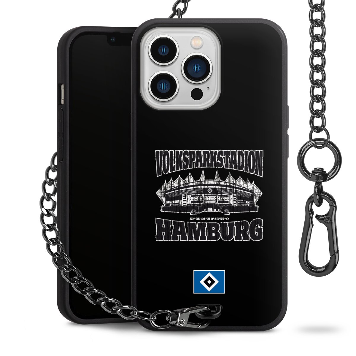 Die mattschwarze Silikon-Handyhülle besteht aus robustem TPU (thermoplastisches Polyurethan). Sie ist flexibel und schützt Dein Smartphone vor Stößen und Kratzern. Die Kette sowie der Karabinerhaken sind aus Metall in Gunmetal-Optik gefertigt. Für dieses Produkt kommen ausschließlich TÜV-geprüfte Materialien zum Einsatz.
