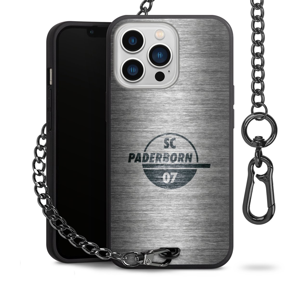 • Mattschwarze Handyhülle mit Metallkette