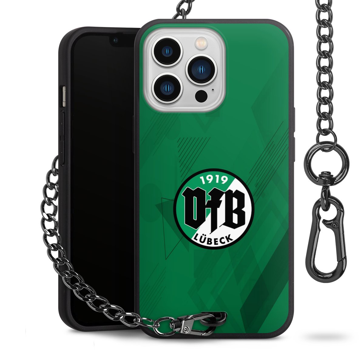 Die mattschwarze Silikon-Handyhülle besteht aus robustem TPU (thermoplastisches Polyurethan). Sie ist flexibel und schützt Dein Smartphone vor Stößen und Kratzern. Die Kette sowie der Karabinerhaken sind aus Metall in Gunmetal-Optik gefertigt. Für dieses Produkt kommen ausschließlich TÜV-geprüfte Materialien zum Einsatz.