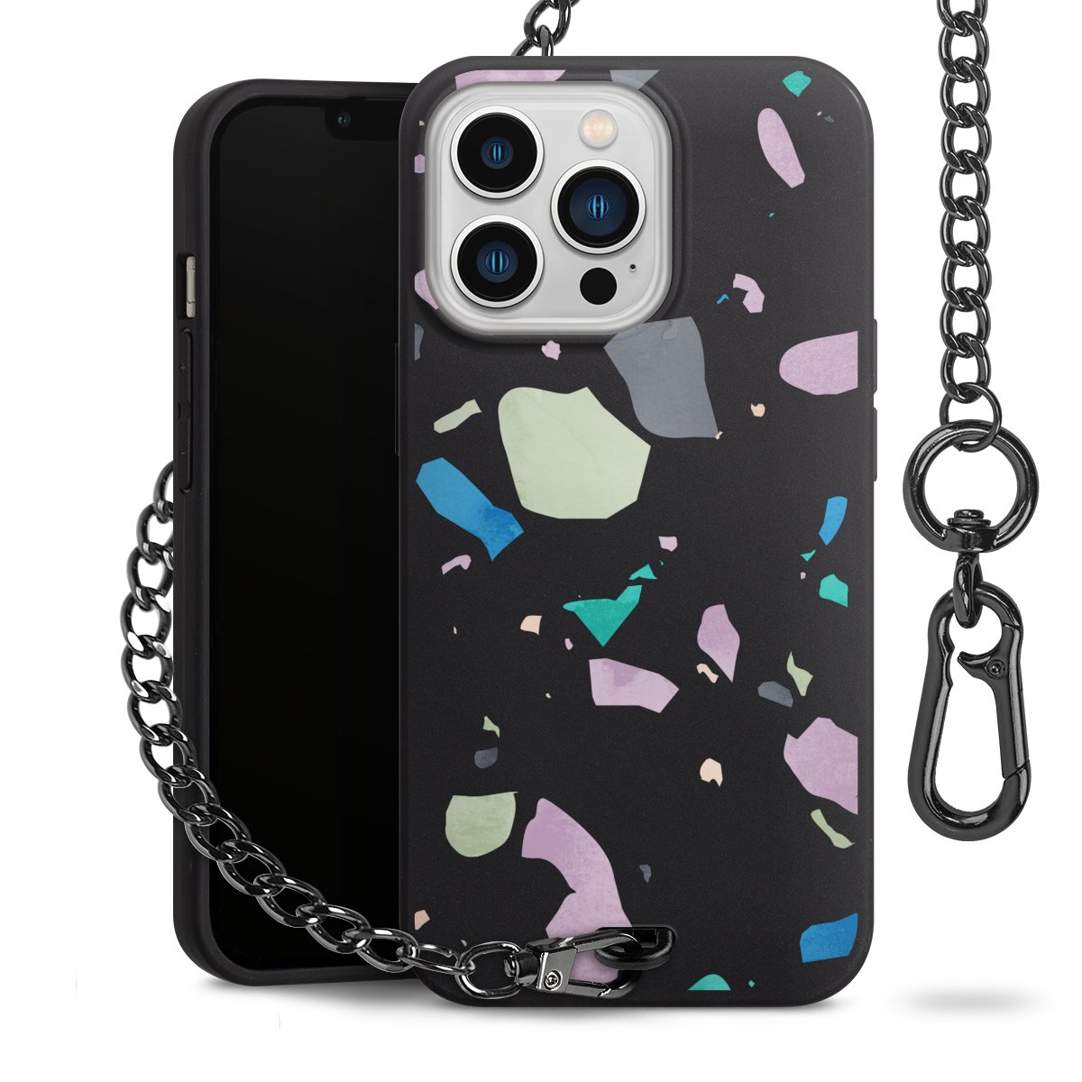• Mattschwarze Handyhülle mit Metallkette