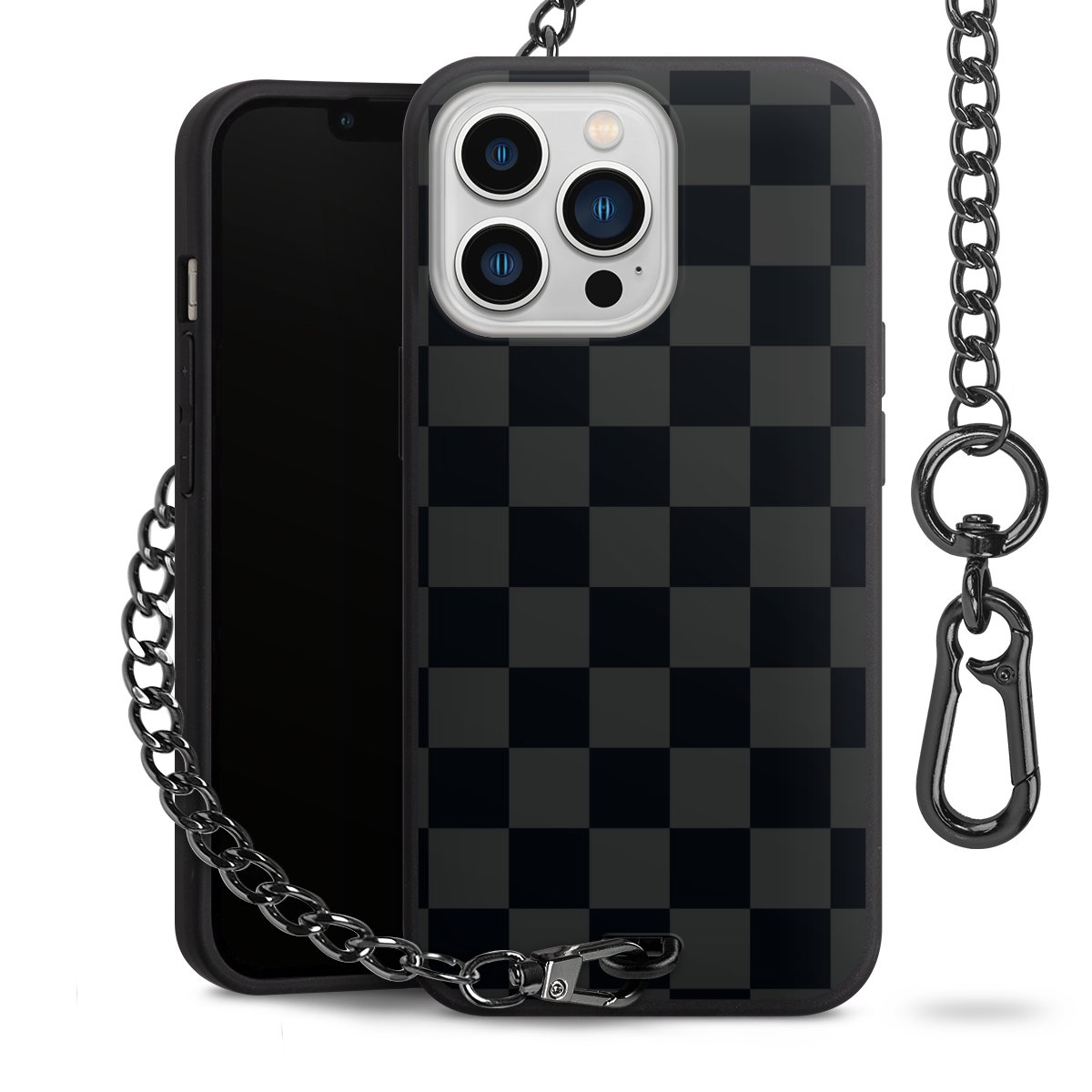 • Mattschwarze Handyhülle mit Metallkette