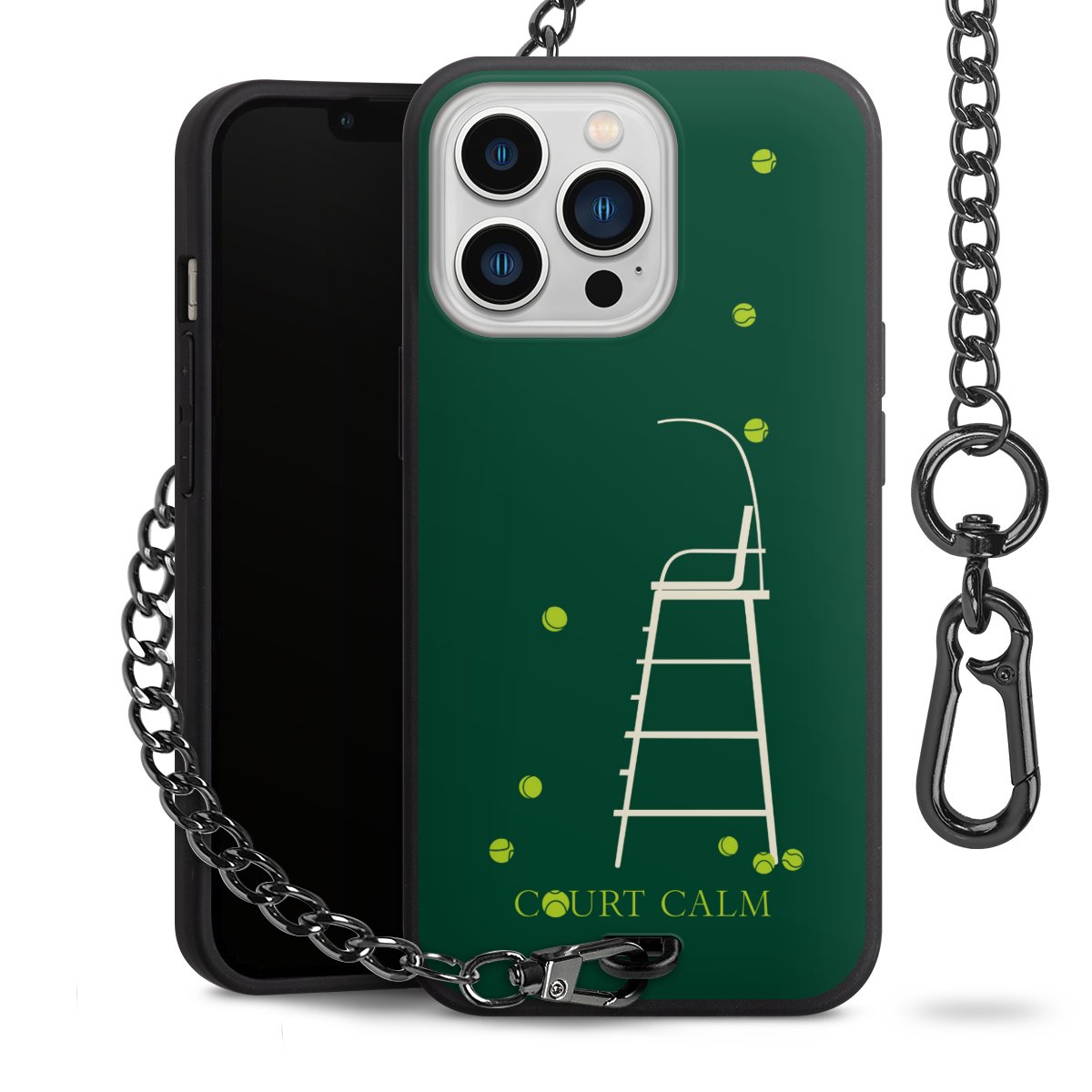 Die mattschwarze Silikon-Handyhülle besteht aus robustem TPU (thermoplastisches Polyurethan). Sie ist flexibel und schützt Dein Smartphone vor Stößen und Kratzern. Die Kette sowie der Karabinerhaken sind aus Metall in Gunmetal-Optik gefertigt. Für dieses Produkt kommen ausschließlich TÜV-geprüfte Materialien zum Einsatz.