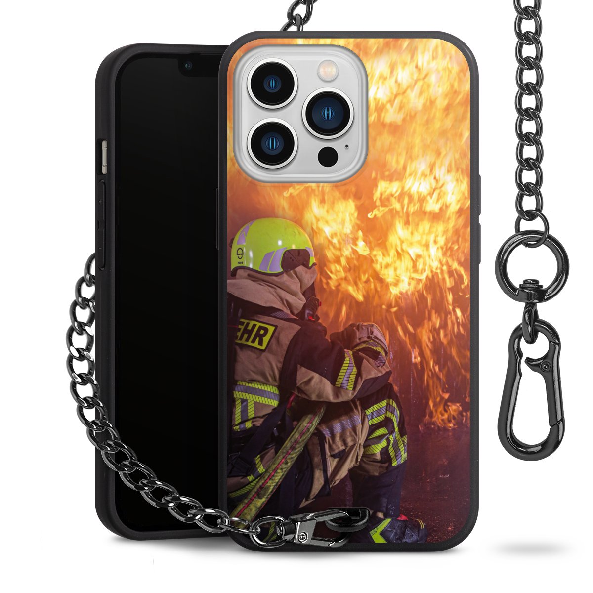 • Mattschwarze Handyhülle mit Metallkette