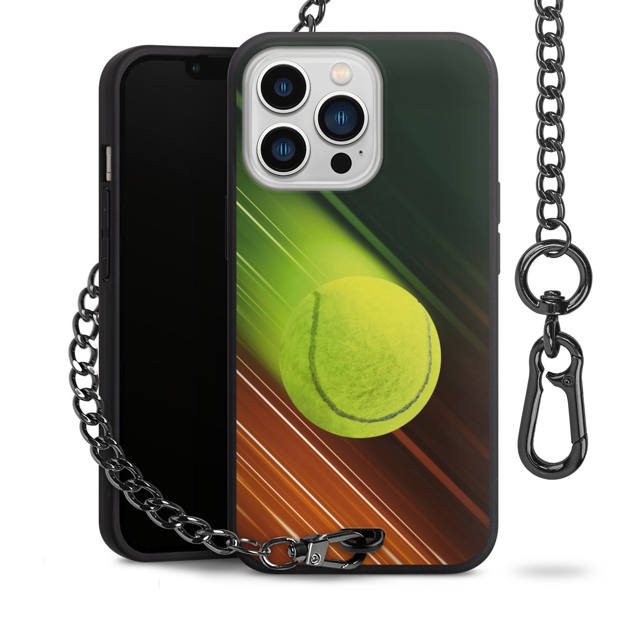 - Mattschwarze Handyhülle mit Metallkette