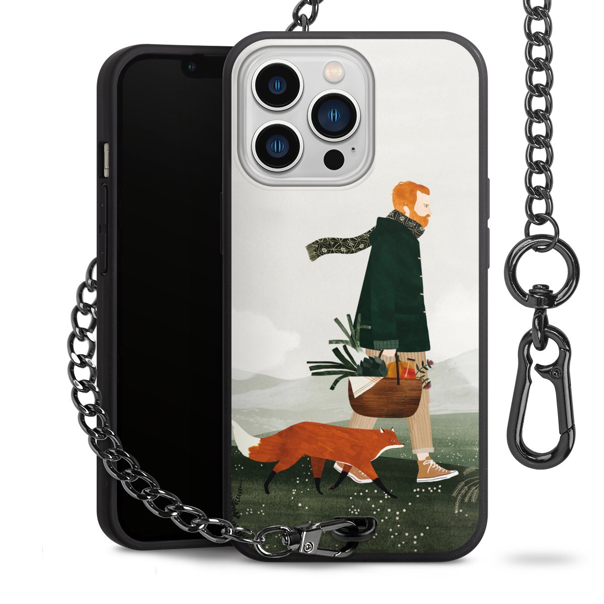- Mattschwarze Handyhülle mit Metallkette