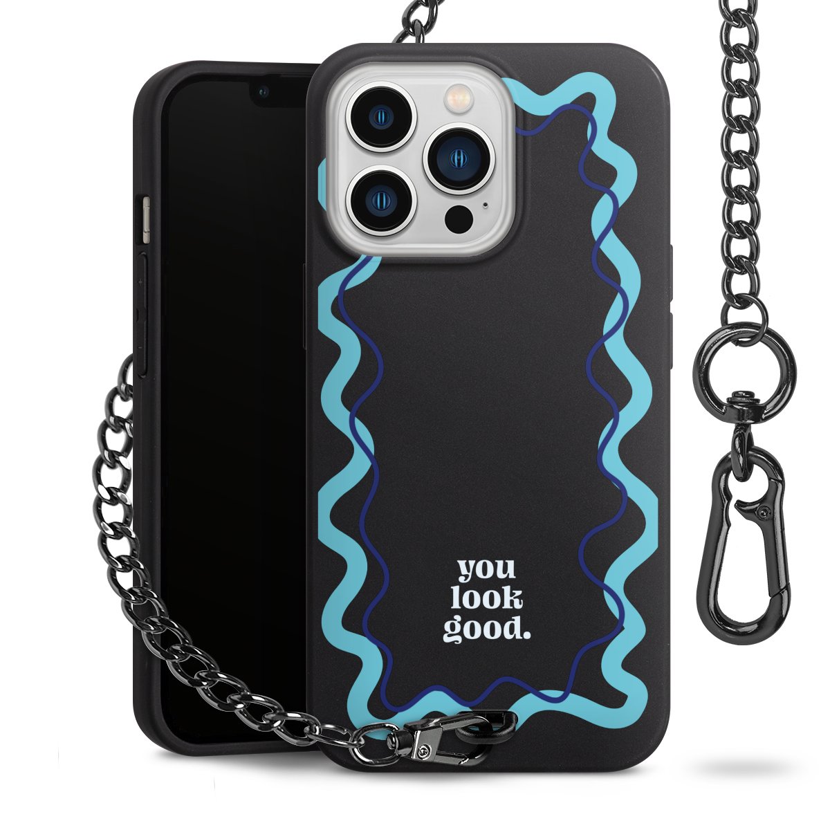 Die mattschwarze Silikon-Handyhülle besteht aus robustem TPU (thermoplastisches Polyurethan). Sie ist flexibel und schützt Dein Smartphone vor Stößen und Kratzern. Die Kette sowie der Karabinerhaken sind aus Metall in Gunmetal-Optik gefertigt. Für dieses Produkt kommen ausschließlich TÜV-geprüfte Materialien zum Einsatz.