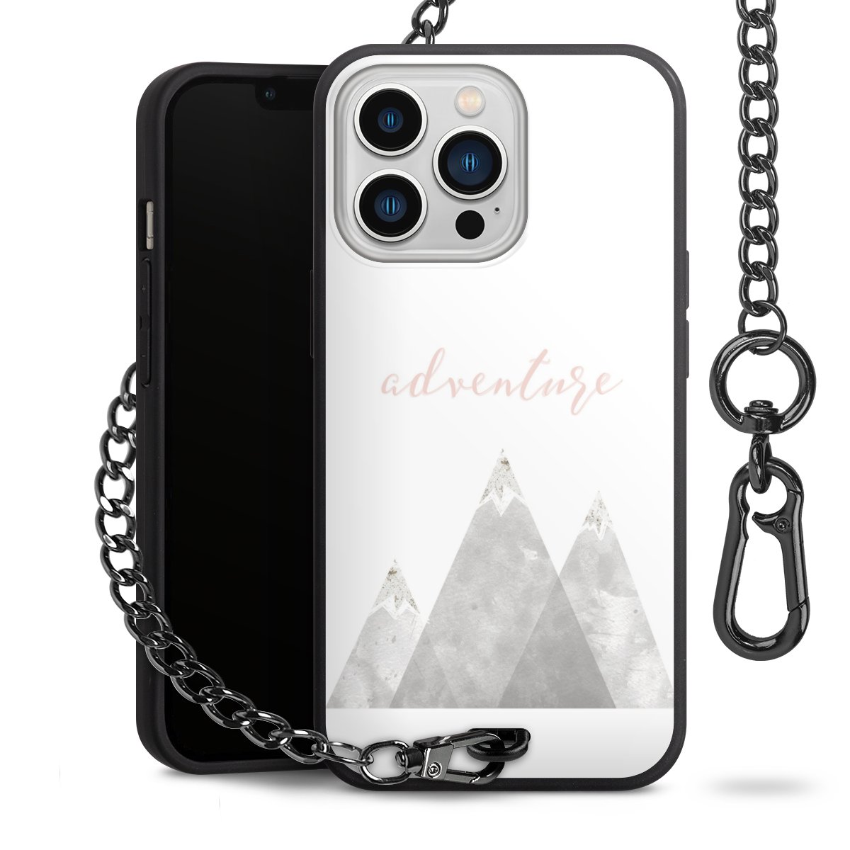 • Mattschwarze Handyhülle mit Metallkette