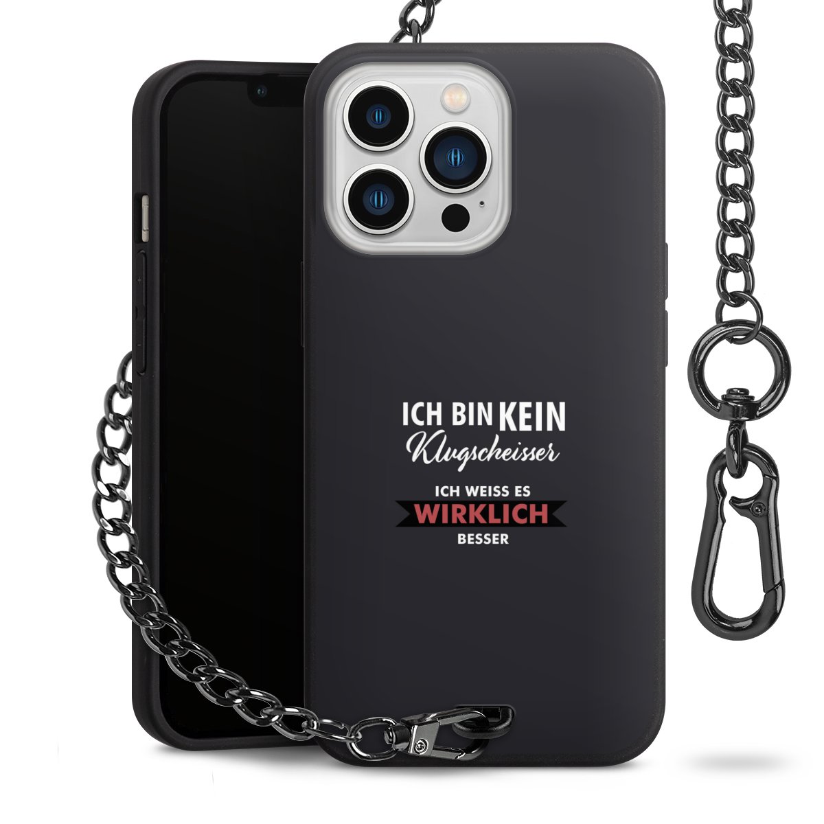 - Mattschwarze Handyhülle mit Metallkette