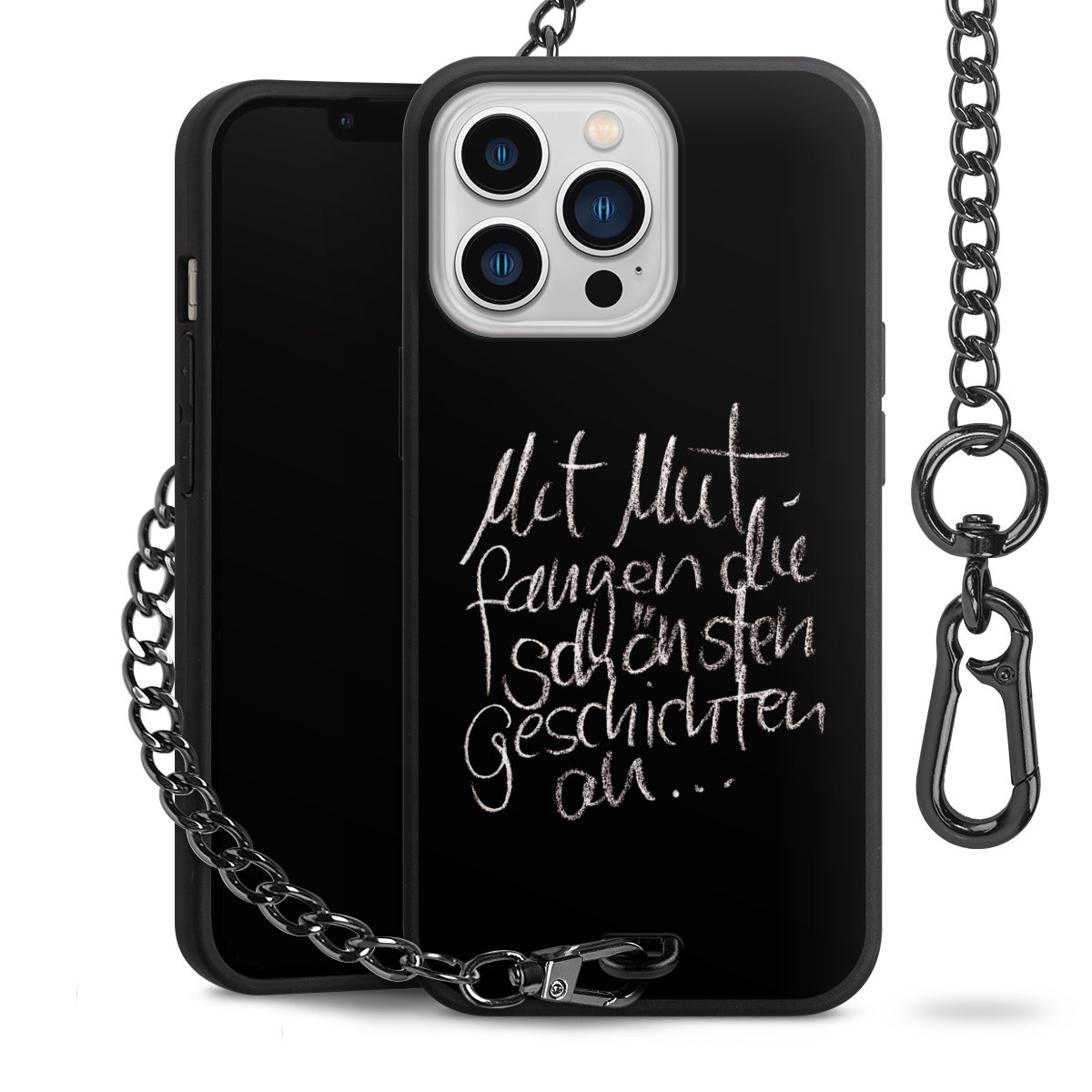 • Mattschwarze Handyhülle mit Metallkette