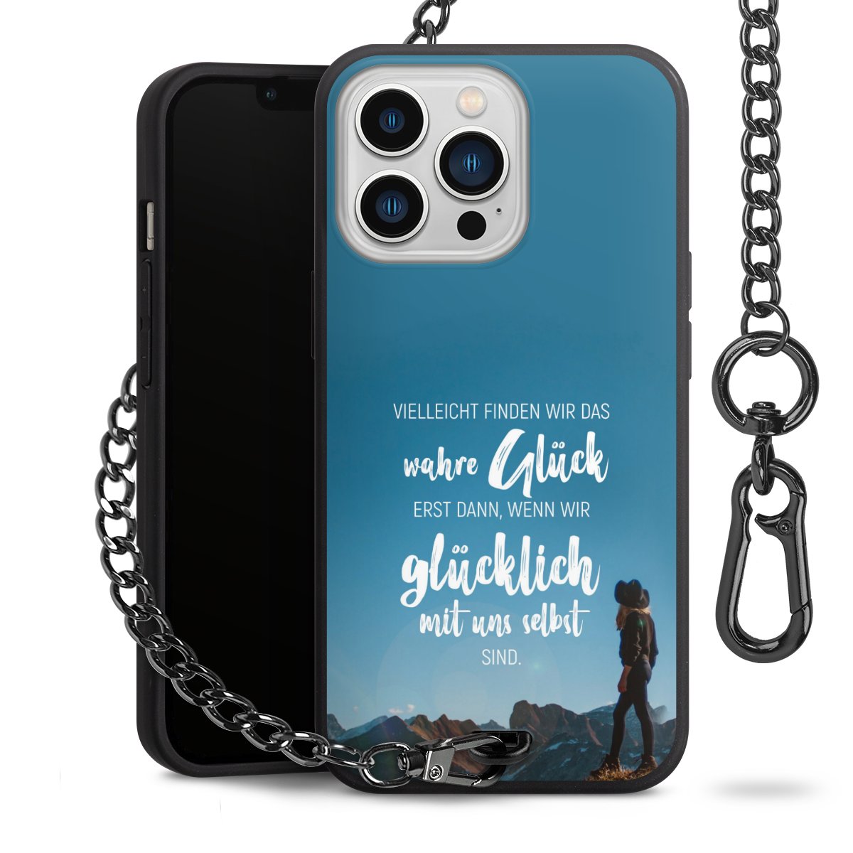 Die mattschwarze Silikon-Handyhülle besteht aus robustem TPU (thermoplastisches Polyurethan). Sie ist flexibel und schützt Dein Smartphone vor Stößen und Kratzern. Die Kette sowie der Karabinerhaken sind aus Metall in Gunmetal-Optik gefertigt. Für dieses Produkt kommen ausschließlich TÜV-geprüfte Materialien zum Einsatz.