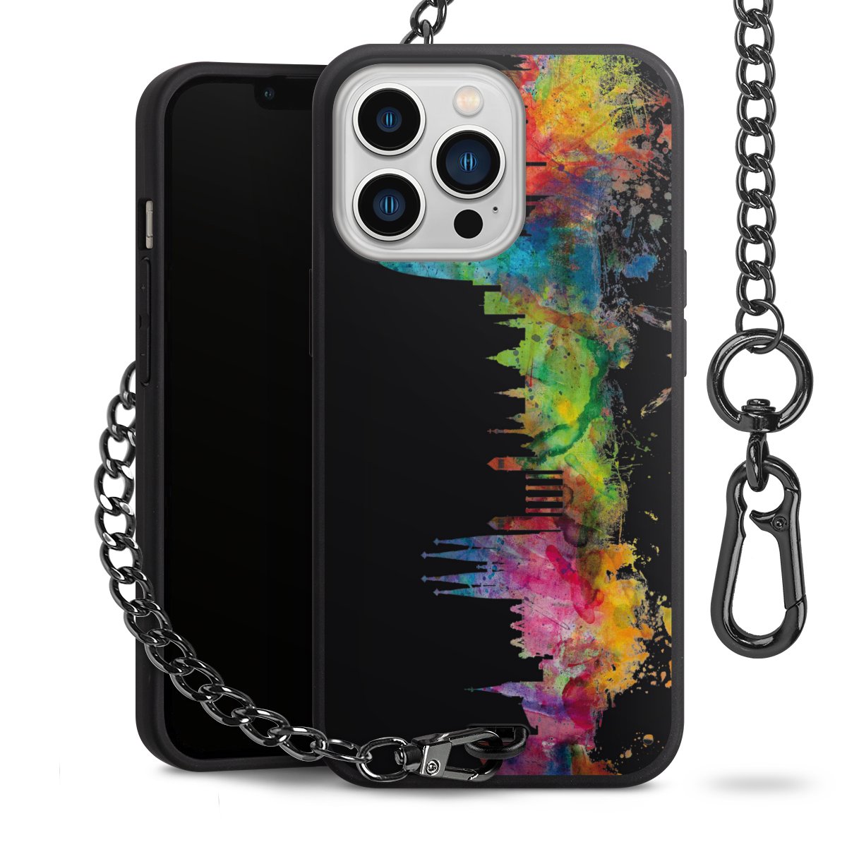 Die mattschwarze Silikon-Handyhülle besteht aus robustem TPU (thermoplastisches Polyurethan). Sie ist flexibel und schützt Dein Smartphone vor Stößen und Kratzern. Die Kette sowie der Karabinerhaken sind aus Metall in Gunmetal-Optik gefertigt. Für dieses Produkt kommen ausschließlich TÜV-geprüfte Materialien zum Einsatz.