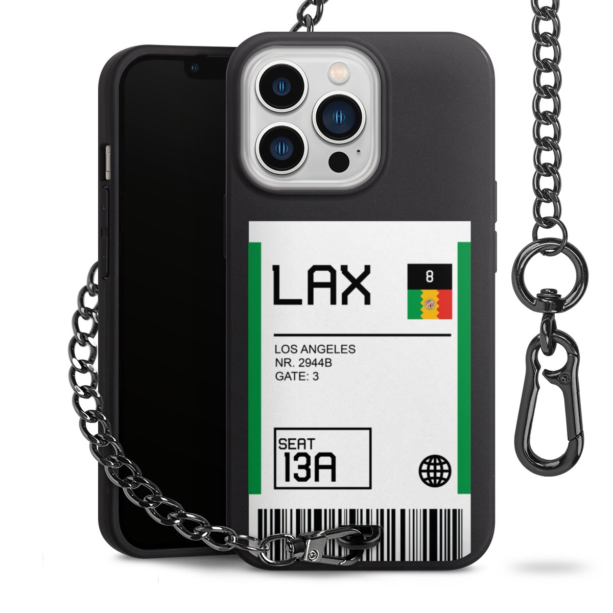 • Mattschwarze Handyhülle mit Metallkette