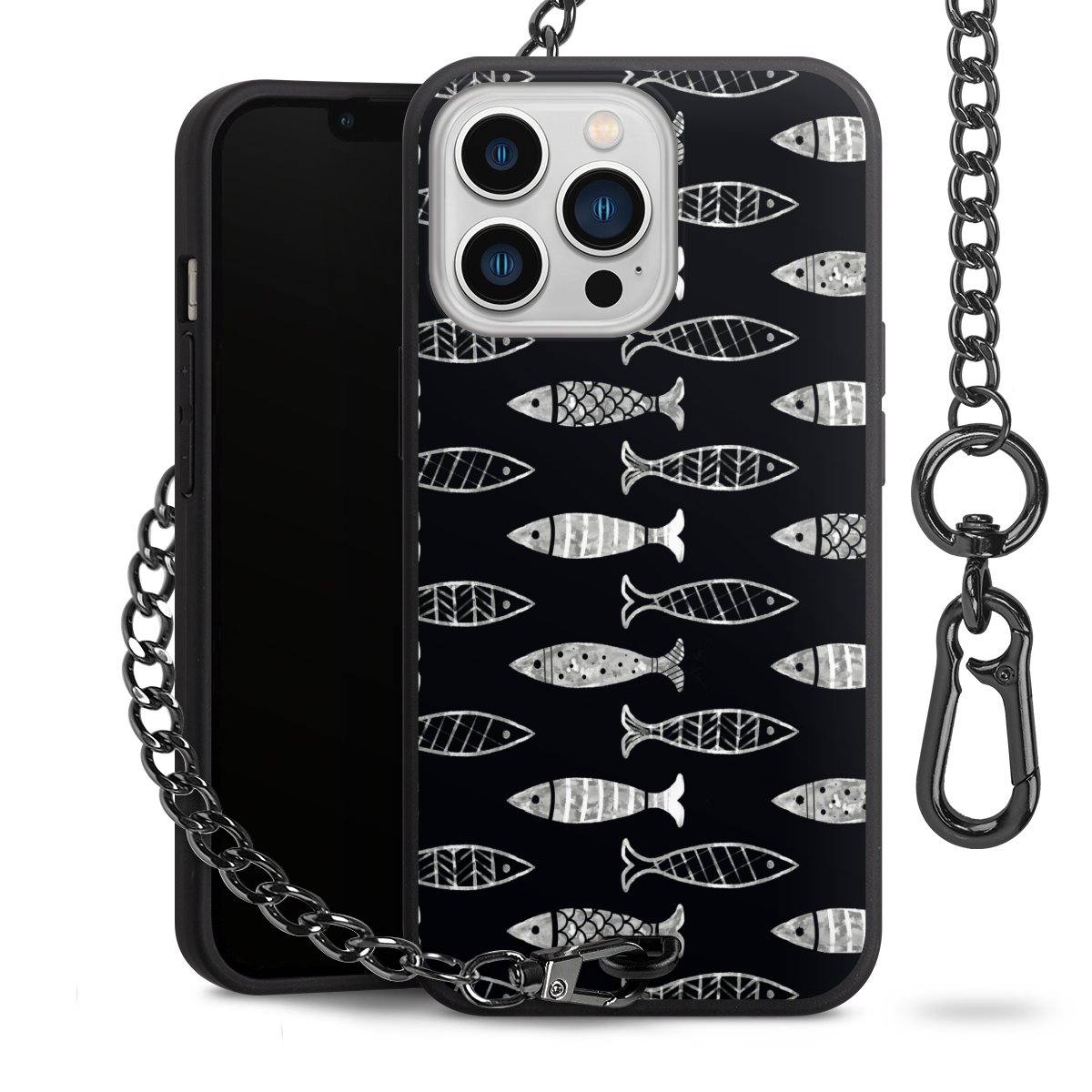 • Mattschwarze Handyhülle mit Metallkette
