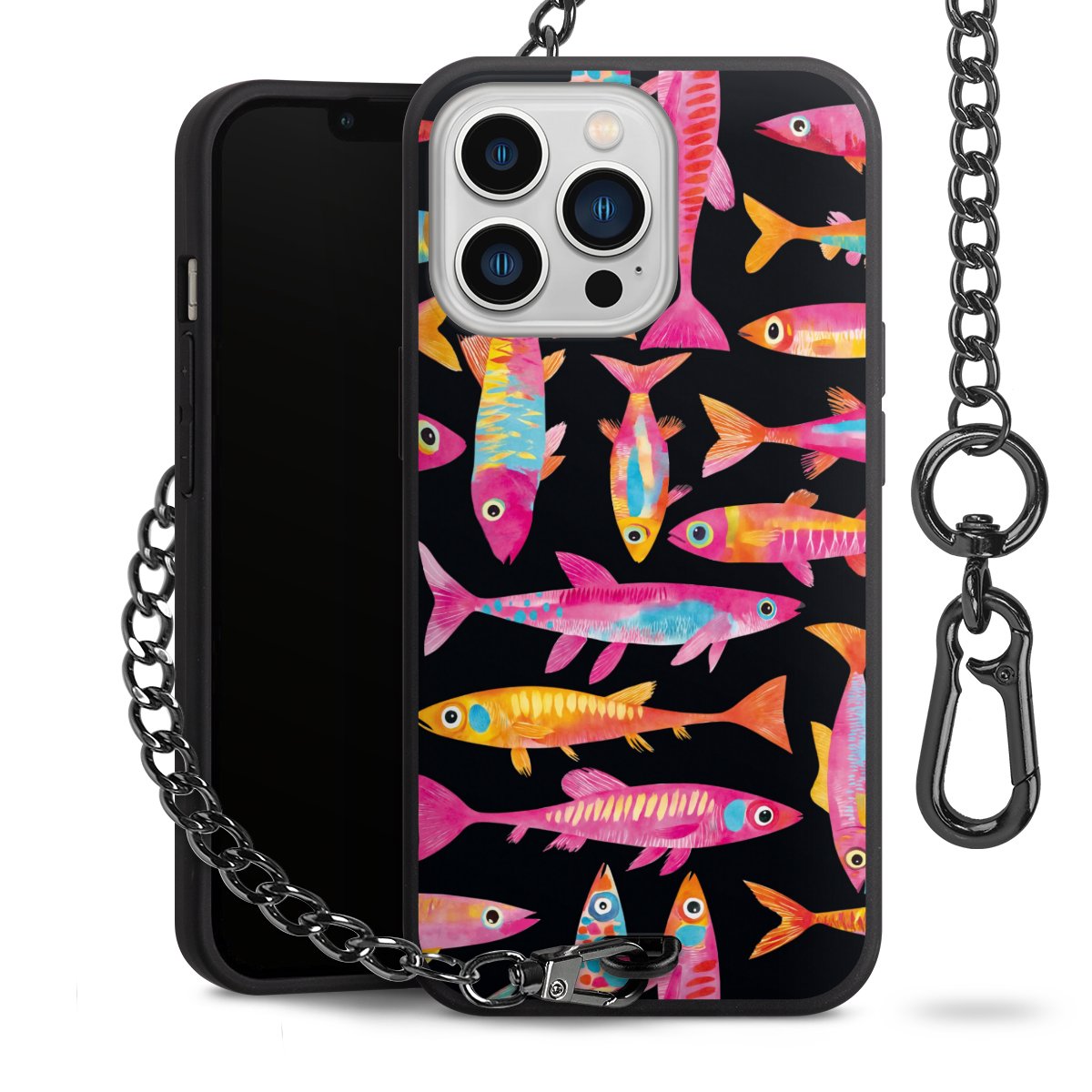 • Mattschwarze Handyhülle mit Metallkette
