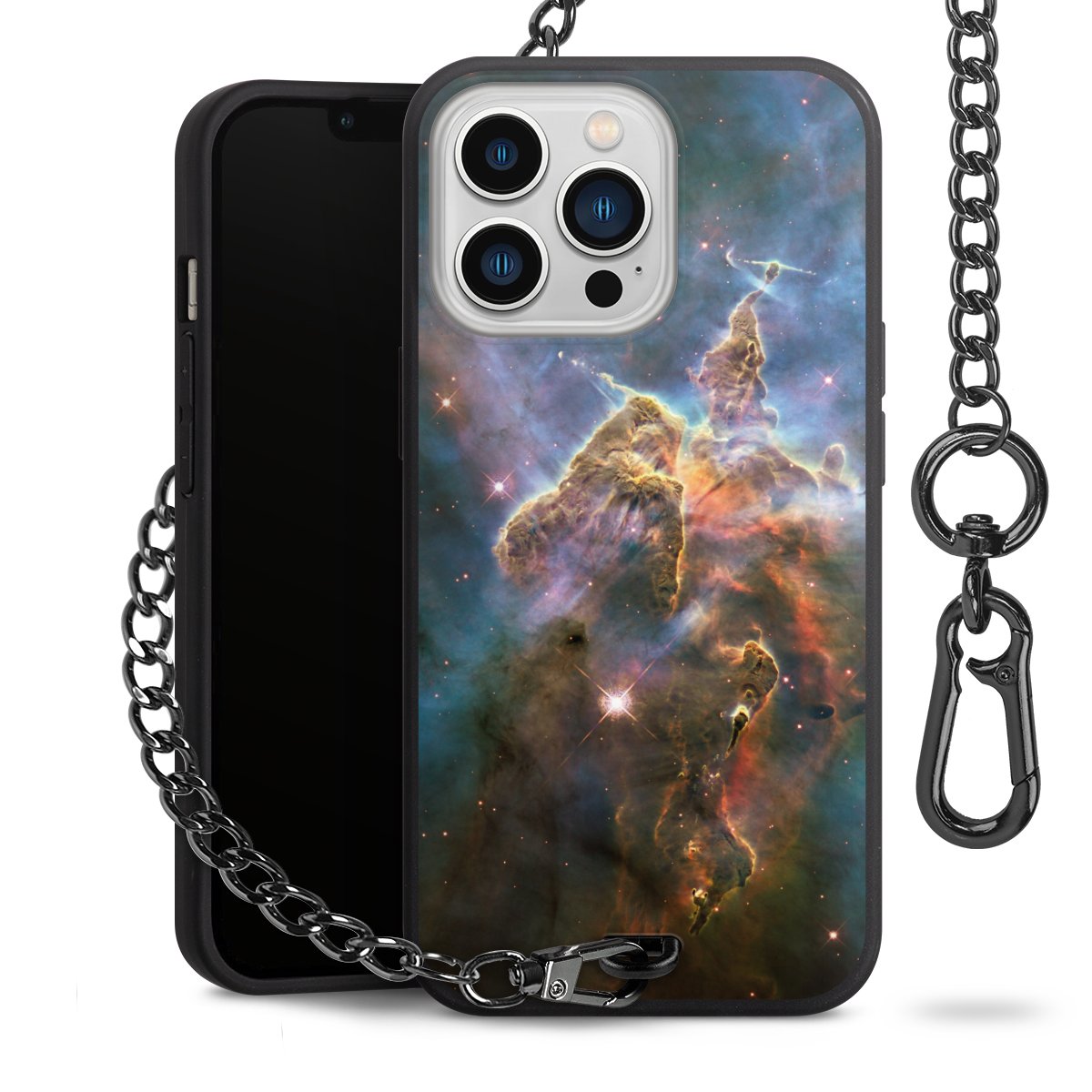 - Mattschwarze Handyhülle mit Metallkette