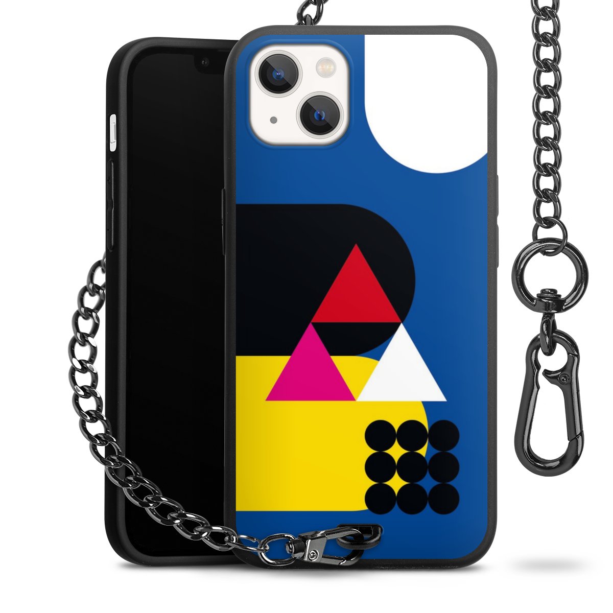 - Mattschwarze Handyhülle mit Metallkette