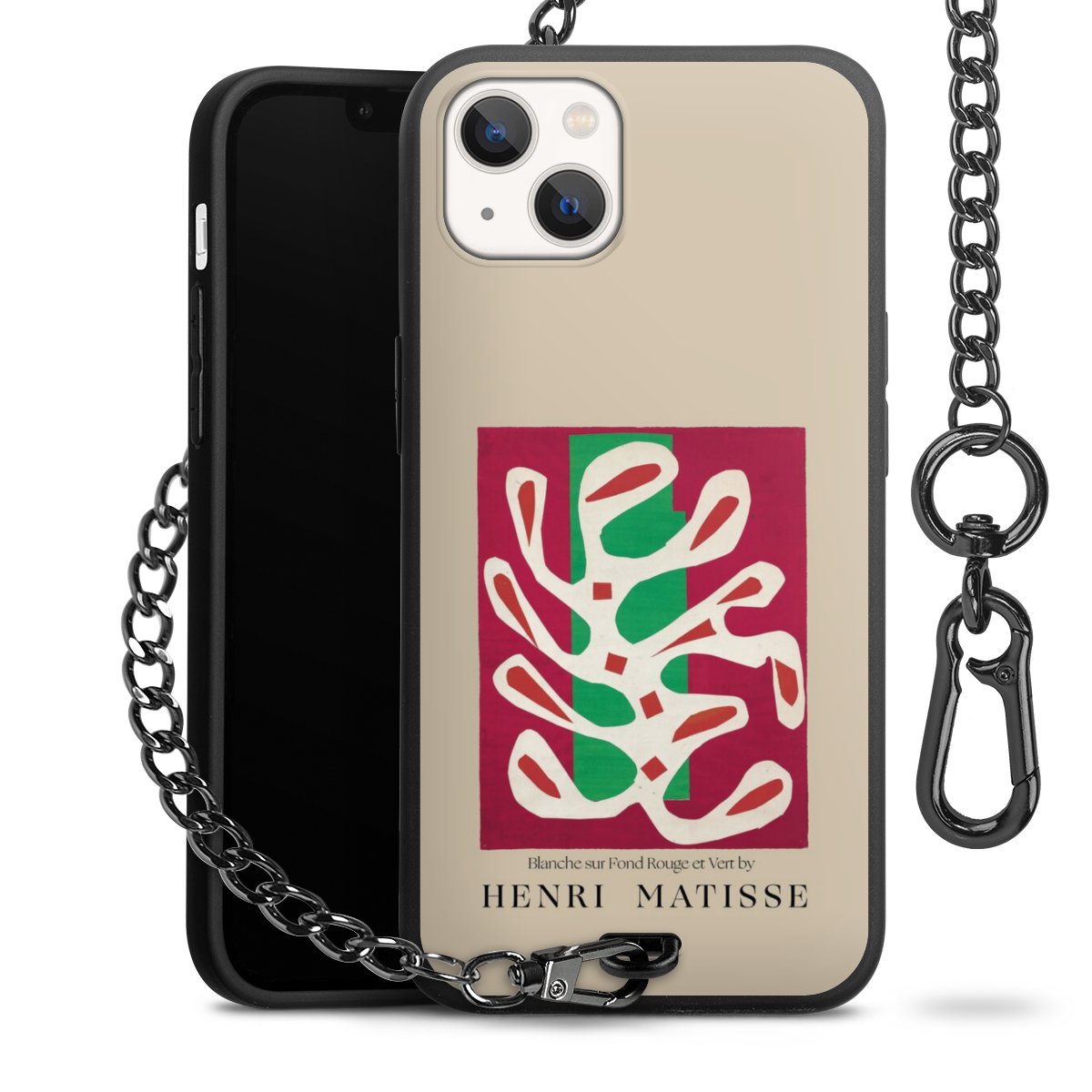 - Mattschwarze Handyhülle mit Metallkette