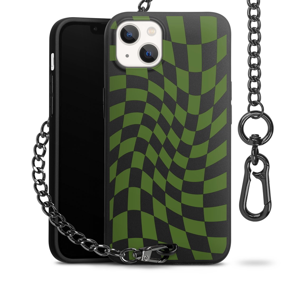 Die mattschwarze Silikon-Handyhülle besteht aus robustem TPU (thermoplastisches Polyurethan). Sie ist flexibel und schützt Dein Smartphone vor Stößen und Kratzern. Die Kette sowie der Karabinerhaken sind aus Metall in Gunmetal-Optik gefertigt. Für dieses Produkt kommen ausschließlich TÜV-geprüfte Materialien zum Einsatz.