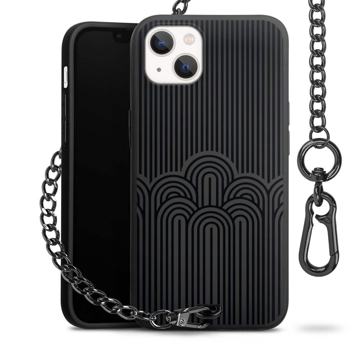 • Mattschwarze Handyhülle mit Metallkette
