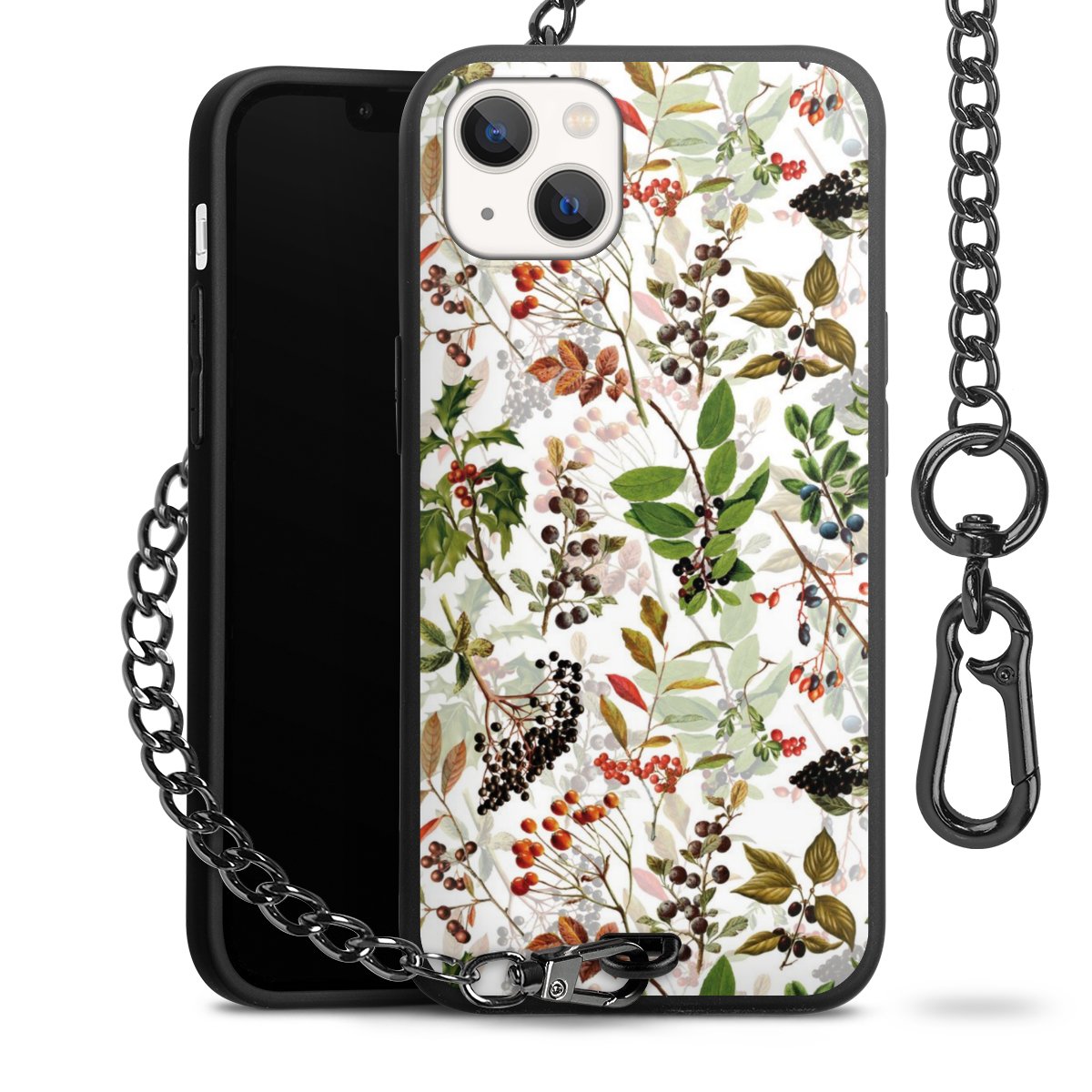 • Mattschwarze Handyhülle mit Metallkette