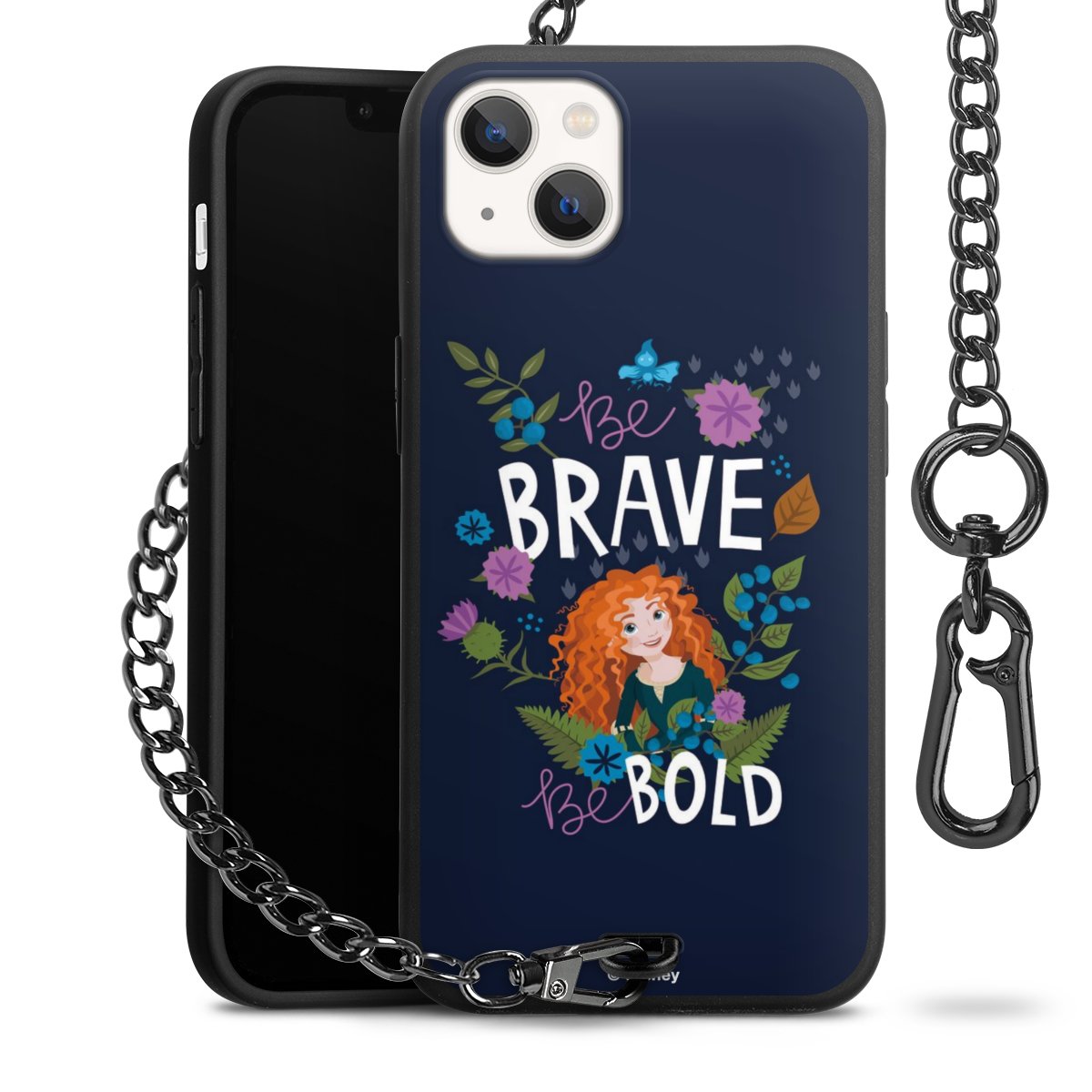 - Mattschwarze Handyhülle mit Metallkette