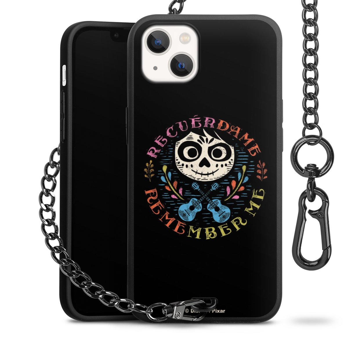- Mattschwarze Handyhülle mit Metallkette