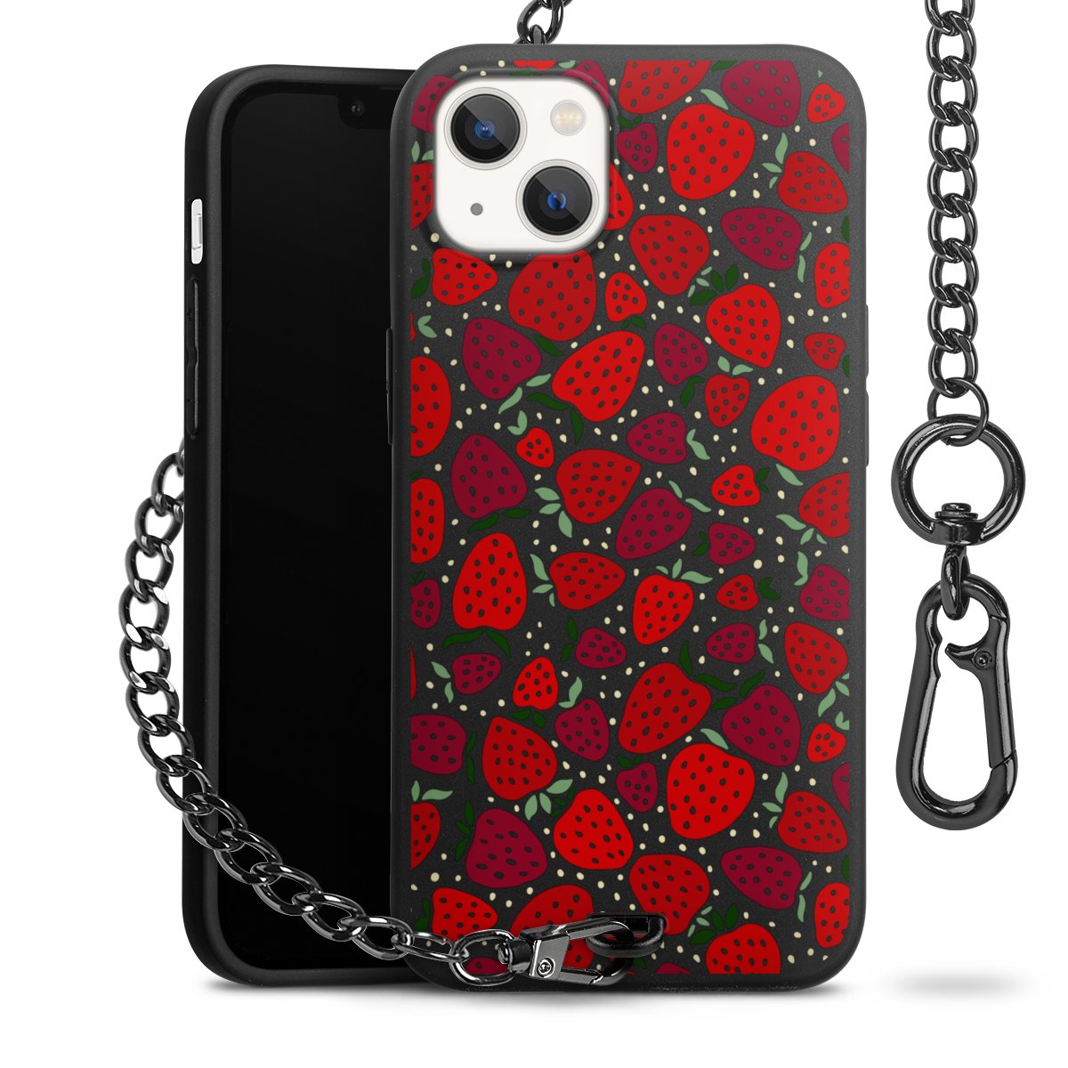 • Mattschwarze Handyhülle mit Metallkette