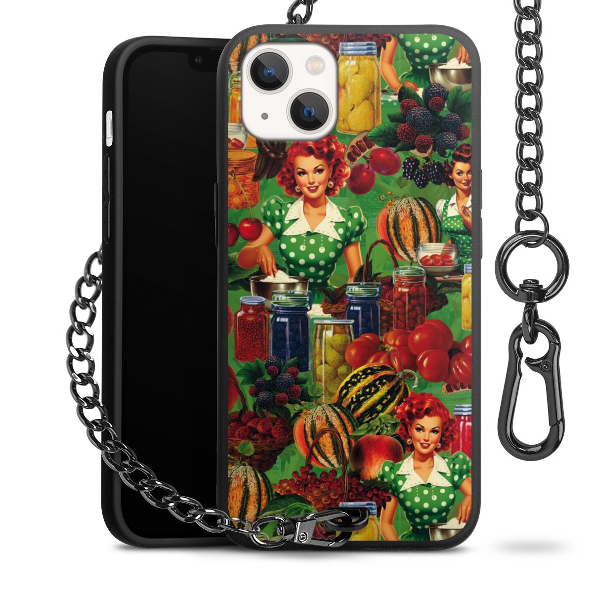 • Mattschwarze Handyhülle mit Metallkette