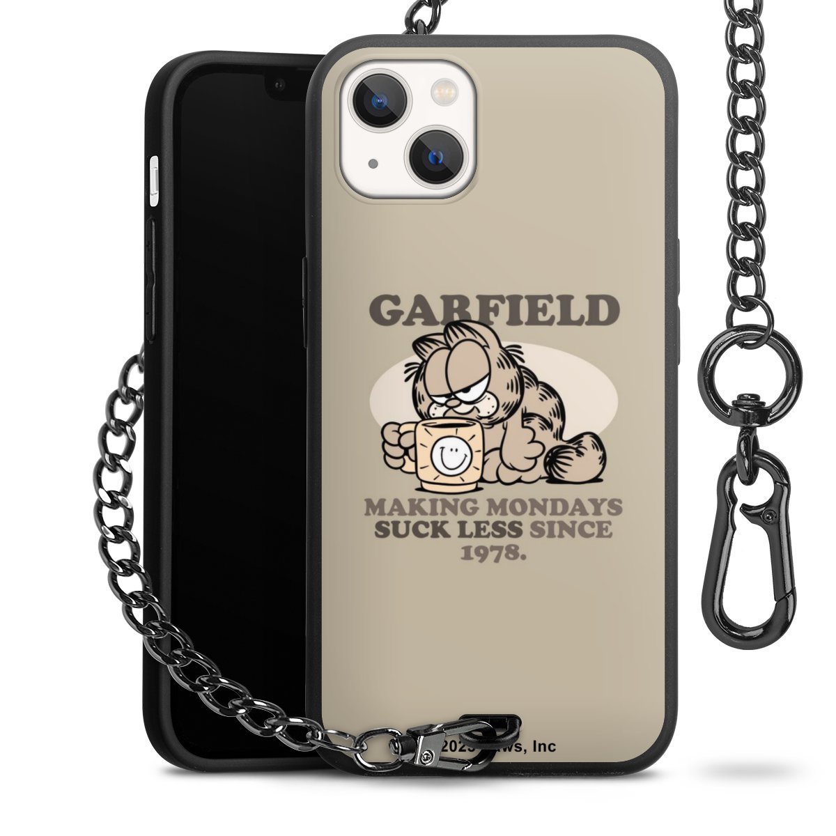 - Mattschwarze Handyhülle mit Metallkette