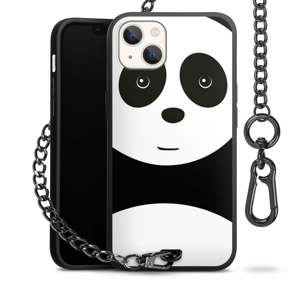 • Mattschwarze Handyhülle mit Metallkette
