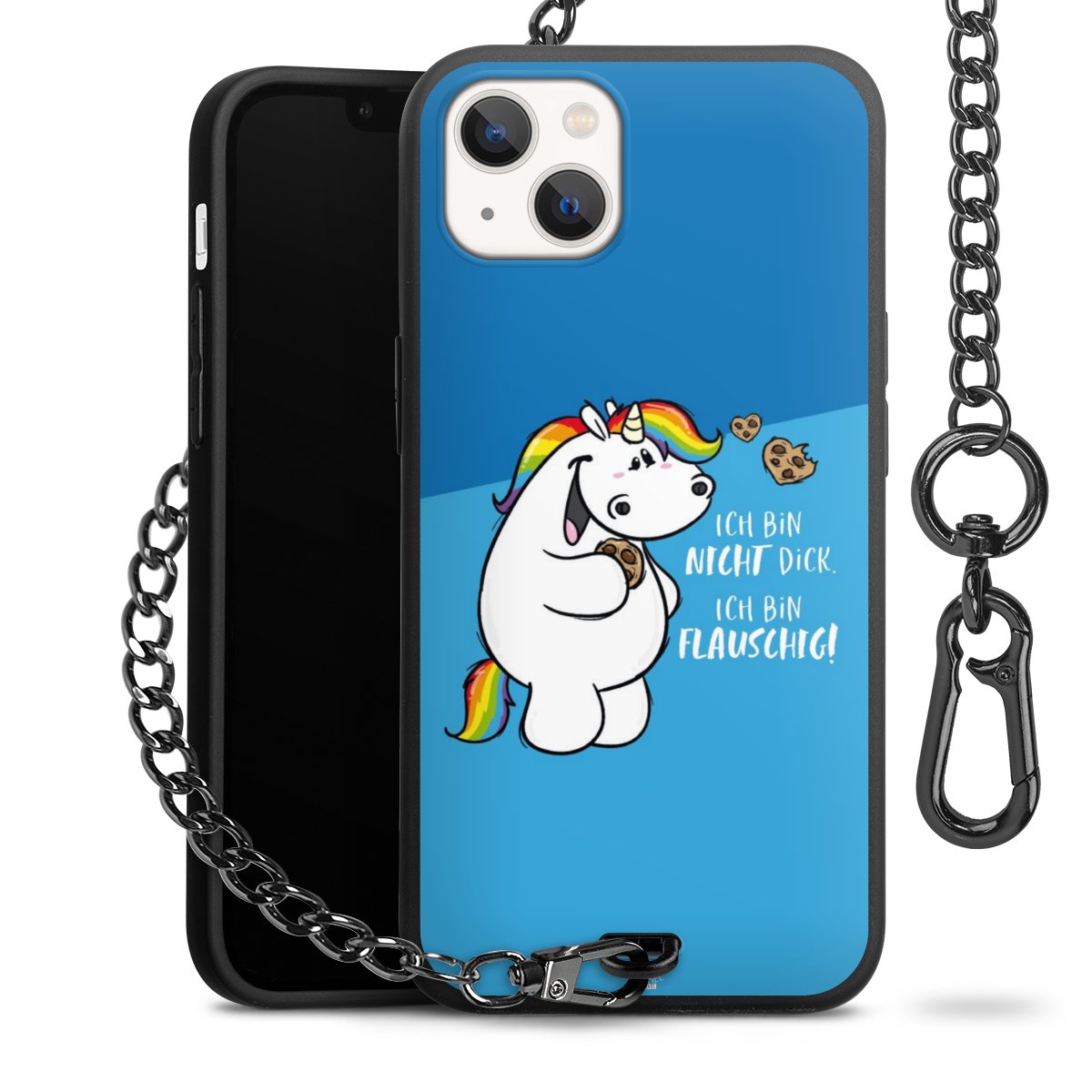 Die mattschwarze Silikon-Handyhülle besteht aus robustem TPU (thermoplastisches Polyurethan). Sie ist flexibel und schützt Dein Smartphone vor Stößen und Kratzern. Die Kette sowie der Karabinerhaken sind aus Metall in Gunmetal-Optik gefertigt. Für dieses Produkt kommen ausschließlich TÜV-geprüfte Materialien zum Einsatz.