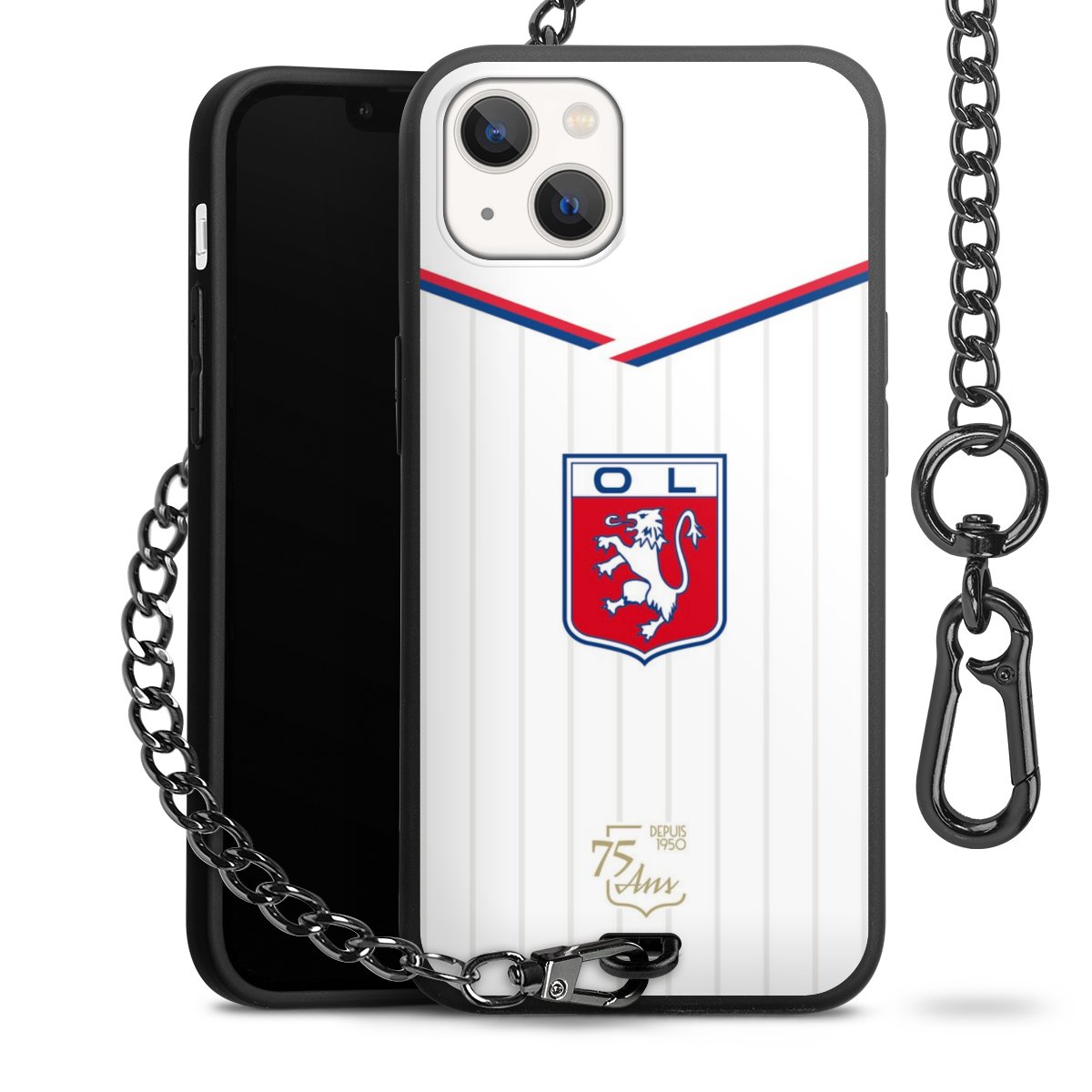 Die Handyhülle verfügt über eine mittig am unteren Rand platzierte Öse, an der die Metallkette stabil befestigt ist. Bestelle die Hülle einfach für Dein Smartphone-Modell, dann passt sie wie angegossen und Du brauchst sie bloß einmal anzudrücken. Handy in die Tasche, Karabiner an den Hosenbund – schon kann die Party starten.