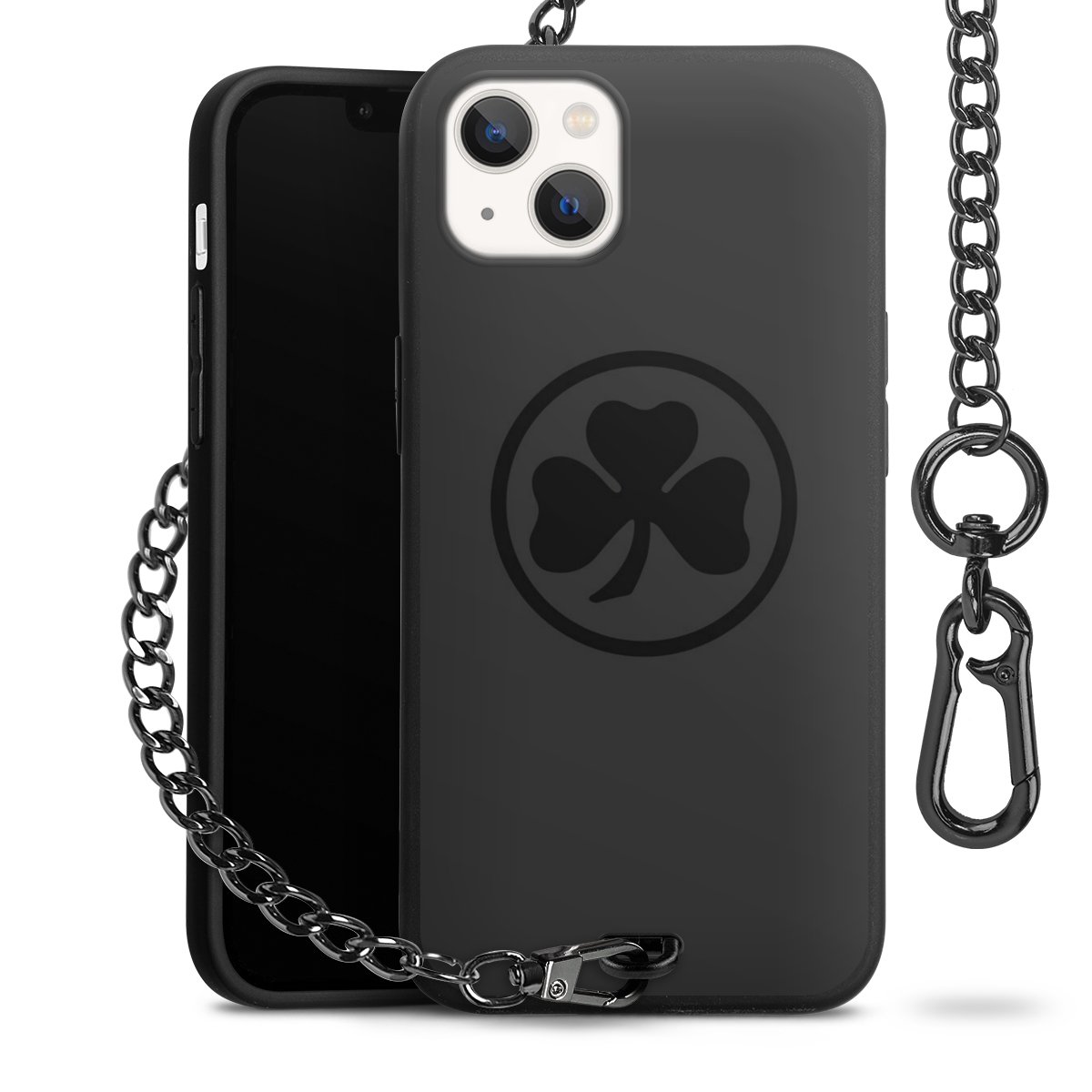 • Mattschwarze Handyhülle mit Metallkette