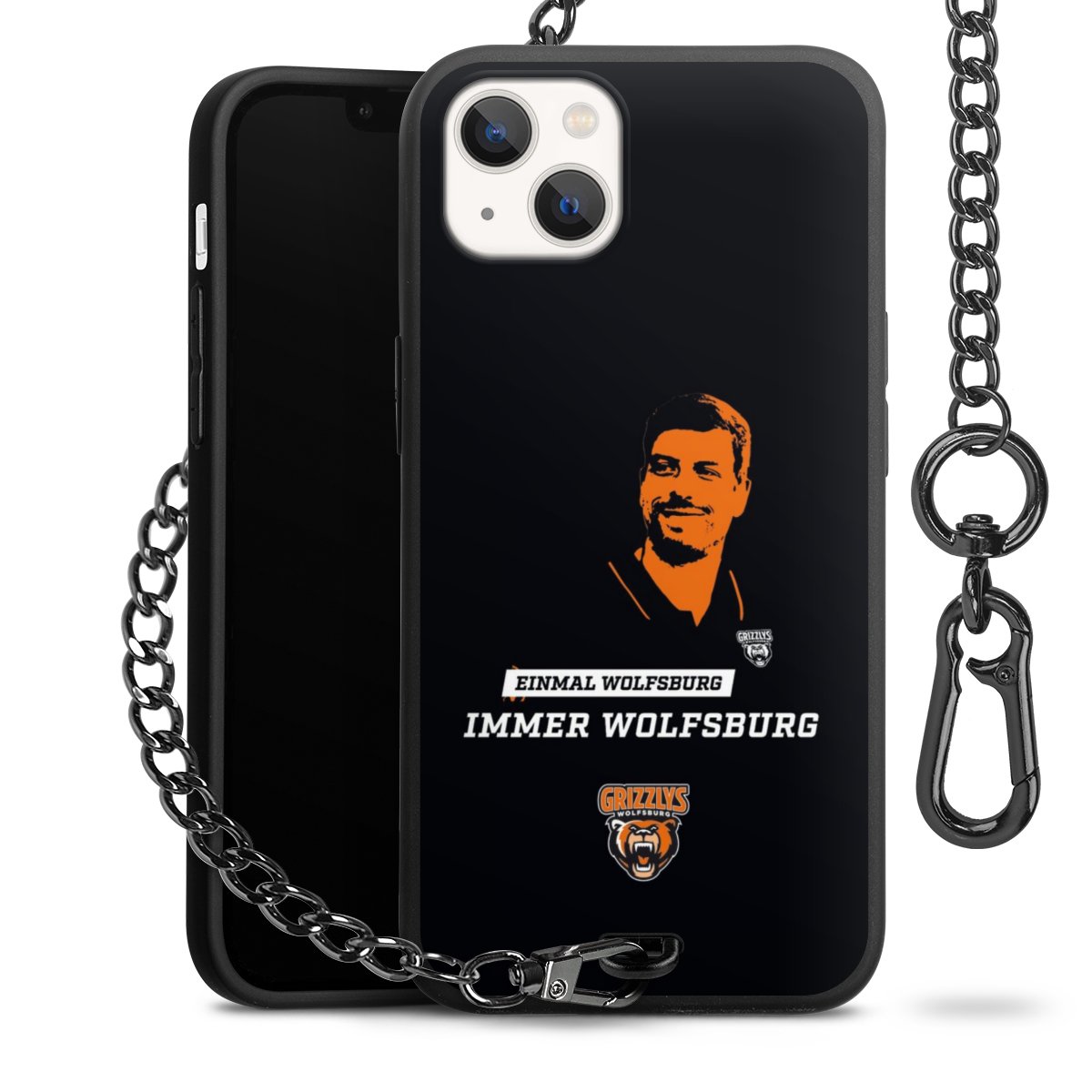 - Mattschwarze Handyhülle mit Metallkette