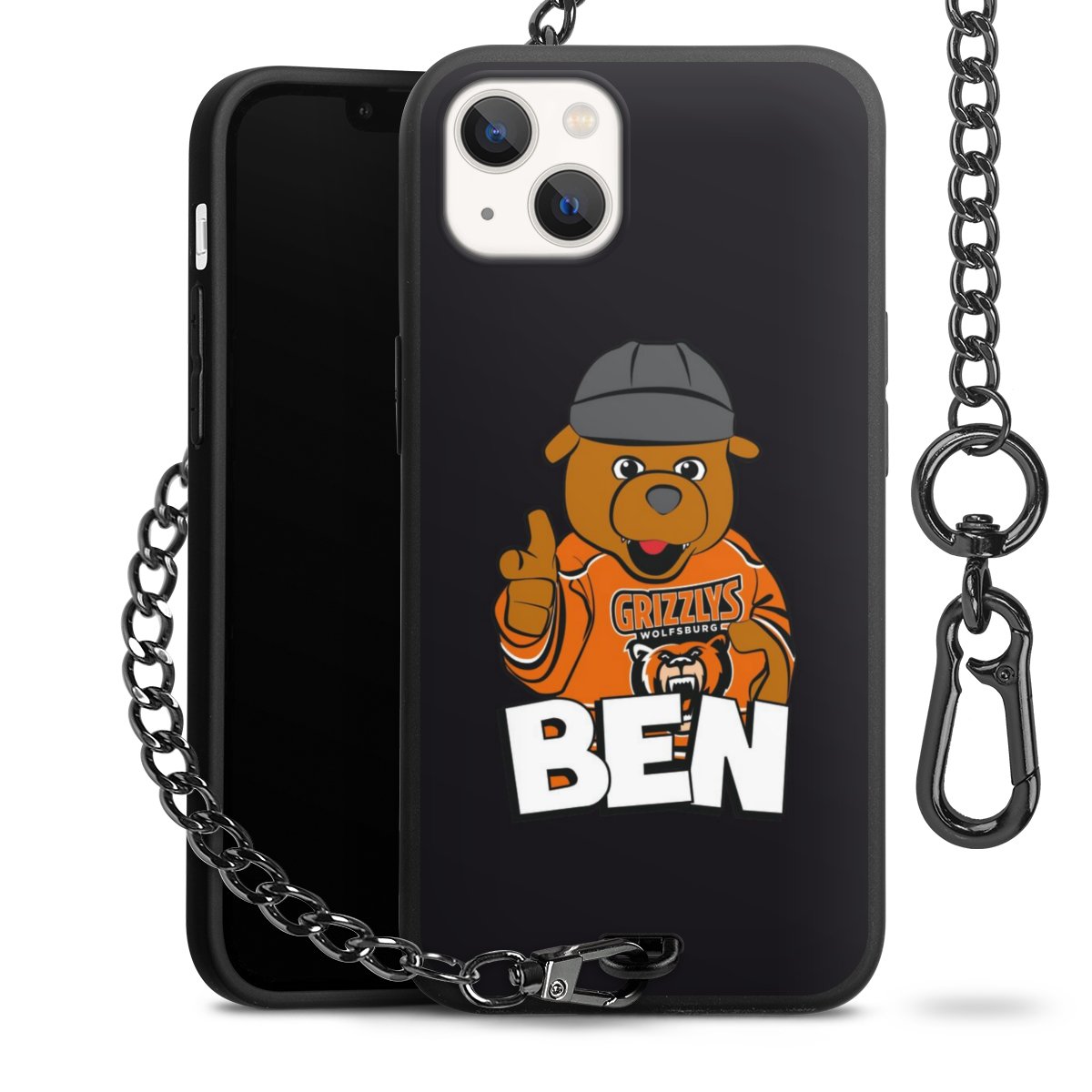 Die mattschwarze Silikon-Handyhülle besteht aus robustem TPU (thermoplastisches Polyurethan). Sie ist flexibel und schützt Dein Smartphone vor Stößen und Kratzern. Die Kette sowie der Karabinerhaken sind aus Metall in Gunmetal-Optik gefertigt. Für dieses Produkt kommen ausschließlich TÜV-geprüfte Materialien zum Einsatz.