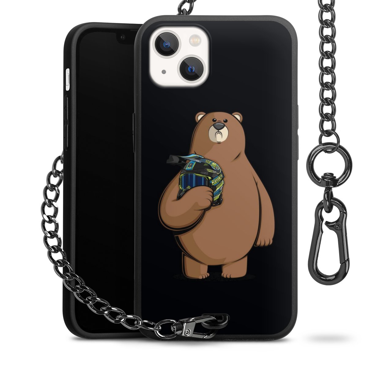 Die mattschwarze Silikon-Handyhülle besteht aus robustem TPU (thermoplastisches Polyurethan). Sie ist flexibel und schützt Dein Smartphone vor Stößen und Kratzern. Die Kette sowie der Karabinerhaken sind aus Metall in Gunmetal-Optik gefertigt. Für dieses Produkt kommen ausschließlich TÜV-geprüfte Materialien zum Einsatz.