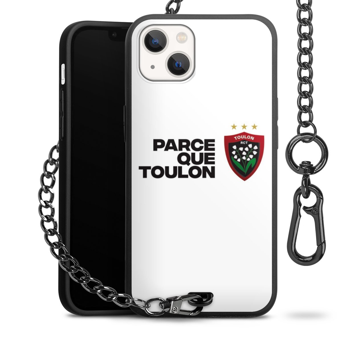Die mattschwarze Silikon-Handyhülle besteht aus robustem TPU (thermoplastisches Polyurethan). Sie ist flexibel und schützt Dein Smartphone vor Stößen und Kratzern. Die Kette sowie der Karabinerhaken sind aus Metall in Gunmetal-Optik gefertigt. Für dieses Produkt kommen ausschließlich TÜV-geprüfte Materialien zum Einsatz.